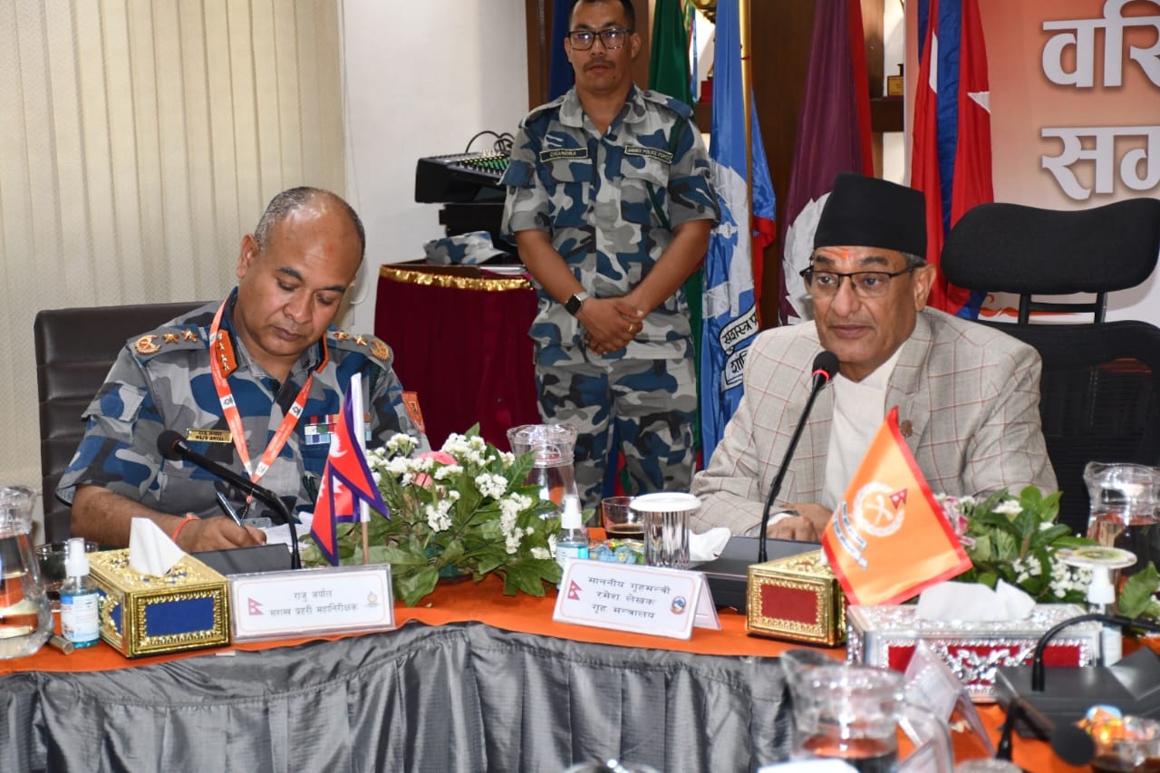 सशस्त्र प्रहरी बल नेपालको प्रधान कार्यालय हलचोकमा आयोजित ‘वरिष्ठ अधिकृतको सम्मेलन २०८२’को समापन समारोहमा गृहमन्त्री लेखकले सशस्त्र प्रहरीले मातृभूमि रक्षा गरिरहेको बताए ।