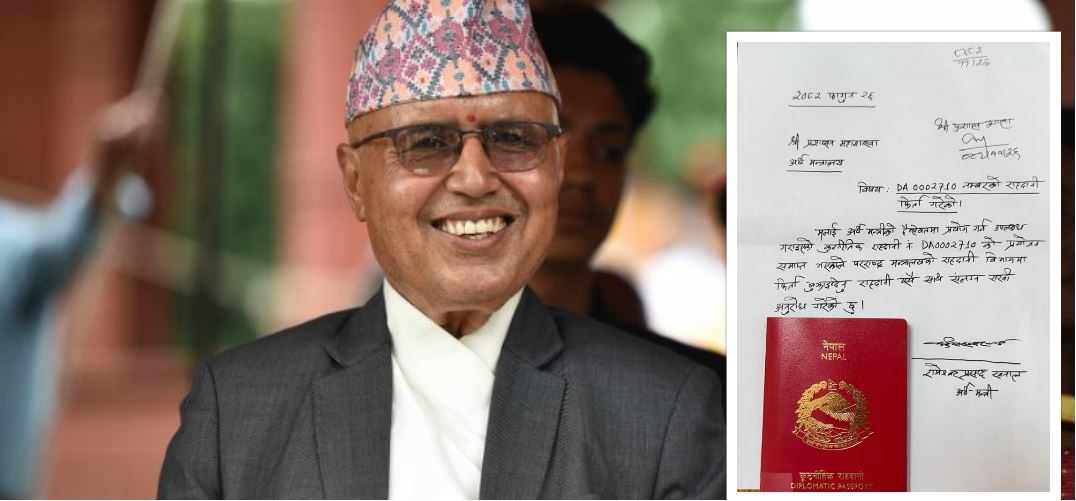 उनले अर्थ मन्त्रालयको प्रशासन महाशाखालाई पठाएको पत्रमा भनेका छन्, ‘मलाई अर्थमन्त्रीको हैसियतमा प्रयोग गर्न उपलब्ध गराइएको कूटनीतिक राहदानी नं. डीए ०००२७१० को प्रयोजन समाप्त भएकाले परराष्ट्र मन्त्रालयको राहदानी विभागमा फिर्ता बुझाइदिनु राहदानी यसै साथ संलग्न राखी अनुरोध गरेको छु।’