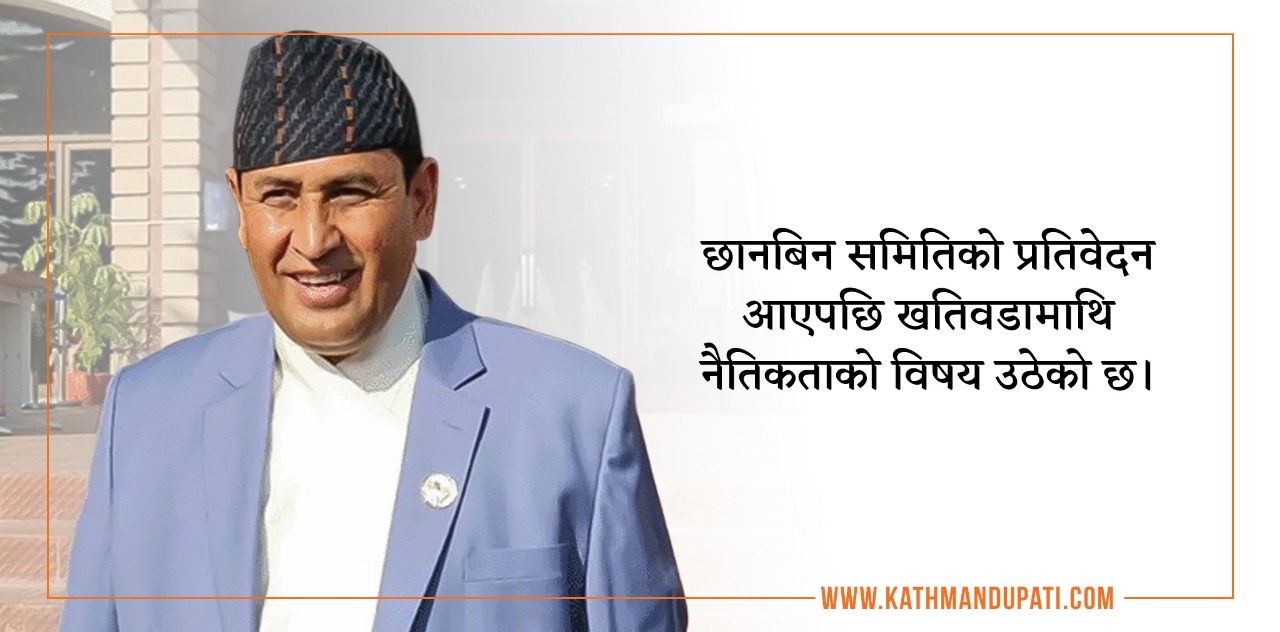 खतिवडामाथि नैतिक प्रश्न उठेपनि उनले भने गल्ती नगरेको र समितिले पनि नाम किटान नगरेका कारण आफूले राजीनामा नदिने प्रतिक्रिया दिएका छन् । यसअघि खतिवडाले आफूले गलत गरेको पुष्टि भए पदबाट राजीनामा दिने घोषणा गरेका थिए ।