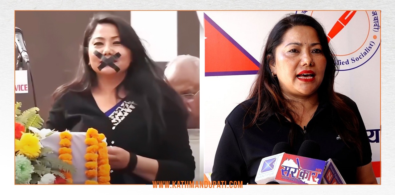 उनी पक्राउ पर्नुअघि २०७७ माघ २८ गते काठमाण्डुमा ओलीविरुद्ध लागेका नेताहरूको अगुवाइमा विरोधसभा गरिएको थियो । जसमा नेत्री झाक्री मुखमा कालोपट्टि लगाएर सांकेतिक विरोधमा उत्रिएकी थिइन् । उनले बोल्न पाउनुपर्ने मत राख्न सांकेतिक विरोध जनाएकी थिइन् ।