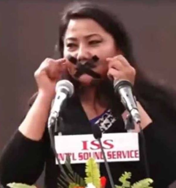 कार्यक्रममा सञ्चालक लीलामणि पोखरेलले बोल्न नाम डाकेपछि झाँक्रीले प्रतिगमन मुर्दावाद लेखिएको कपडा शरीरबाट निकालेर फालेकी थिइन् ।