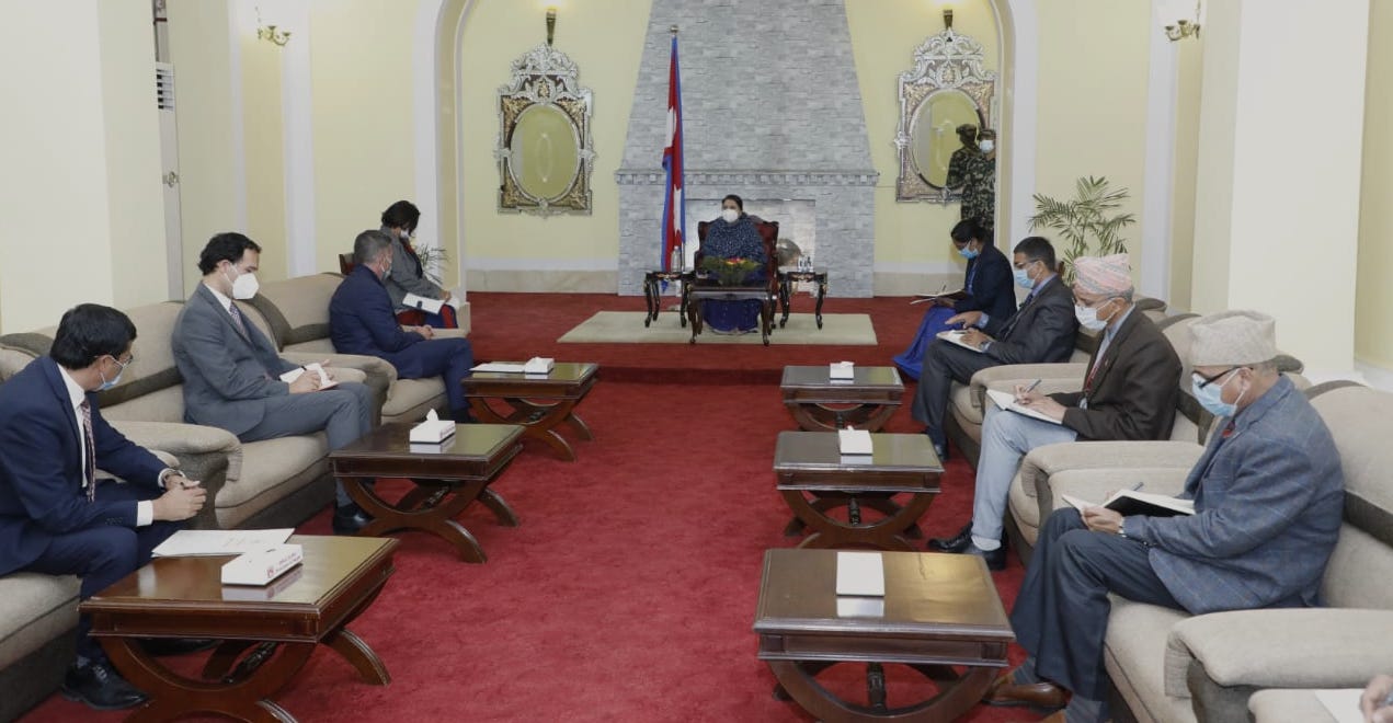 प्रधानमन्त्री केपी शर्मा अ‍ोलीले गत पुस ५ गते संसद विघटन गरेका थिए । नेपाल कम्युनिष्ट पार्टी (नेकपा) विभाजन भएसँगै अमेरिकी राजदूतको राजनीतिक भेटवार्ता बाक्लिएको हो । राजदूत बेरीले राष्ट्रपति विद्यादेवी भण्डारीसँग मंगलबार साँझ भेटवार्ता गरेका छन् । उनले शीतल निवास पुगेर राष्ट्रपतिसँग भेटवार्ता गरेको जानकारी दिए ।
