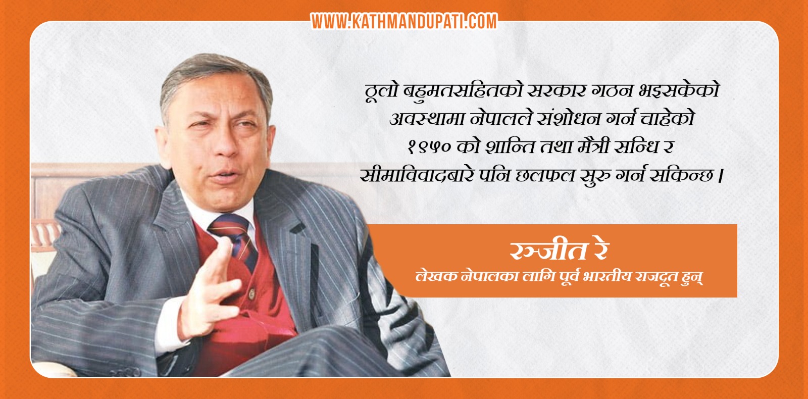 लेखक नेपालका लागि भारतका पूर्व राजदूत हुन् ।