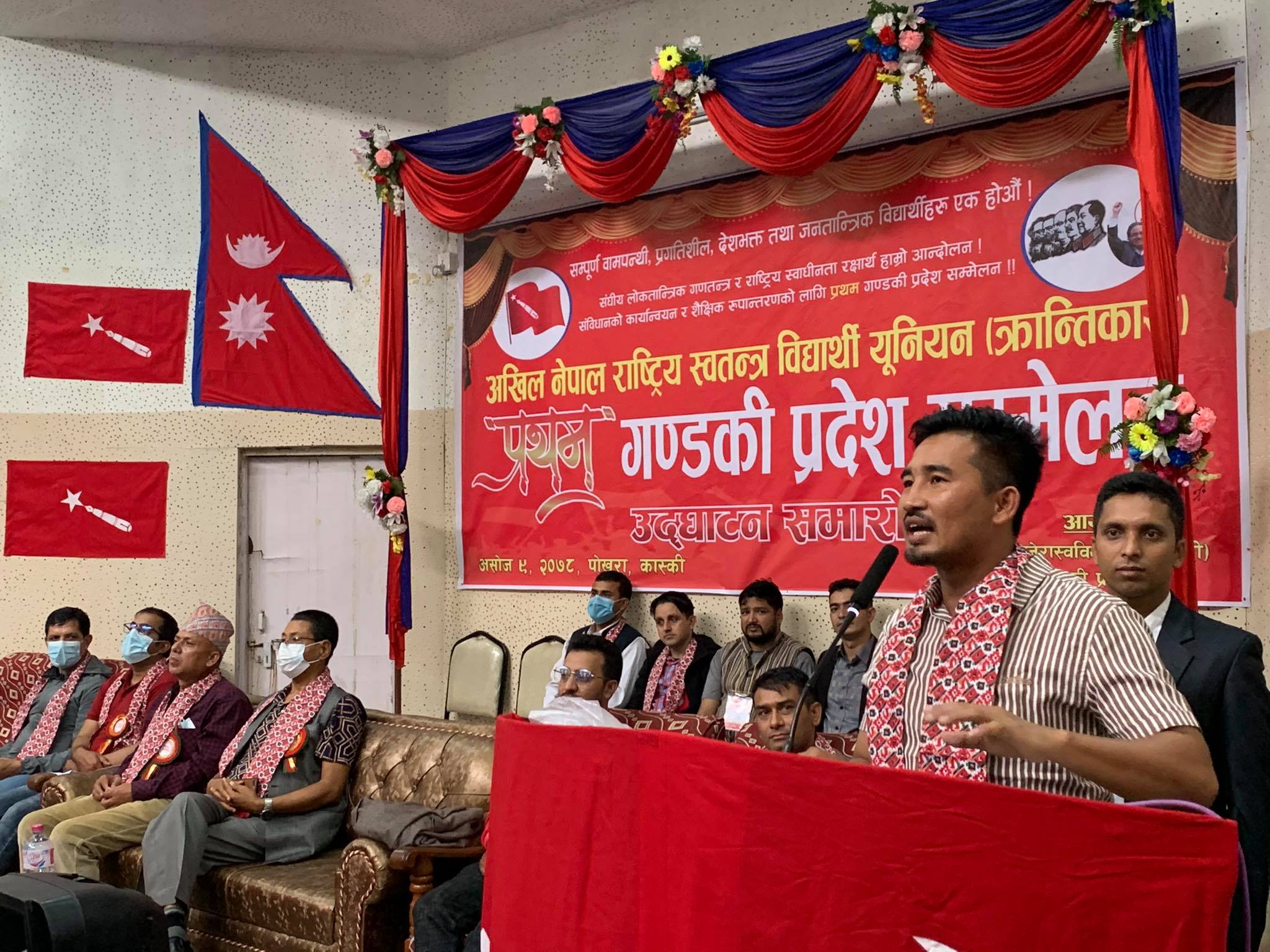 ‘संसद अपहरणको साक्षी र समर्थक बनेर एमाले अनेरास्ववियुले गम्भीर अपराध गरेको छ । मुलुकभरका शैक्षिक संस्थाहरुमा बिद्यार्थीहरु हिसाब गरेर बसिराखेका छन । आउँदो स्ववियू निर्वाचनमा प्रतिगमनको मतियार बनेको अनेरास्ववियुका निम्ति अन्तिम निर्वाचन हुनेछ,’ तामाङले अगाडी भने, ‘मण्डले बिद्यार्थी संगठनले आउँदो स्ववियू चुनावमा उमेदवार समेत नपाउने स्थिती बन्नेछ ।’