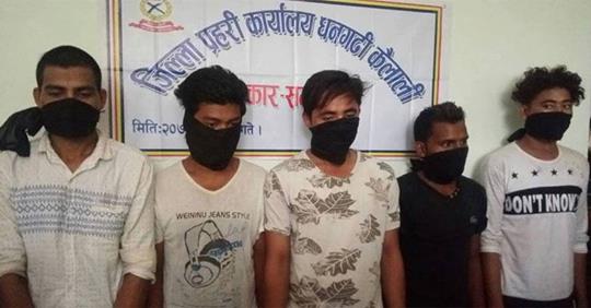 कैलाली – कैलालीमा जबर्जस्ती करणीपछि हत्या अभियोगमा प्रहरीले ५ जनालाई पक्राउ गरेको छ । गौरीगंगा नगरपालिका ११ शिवपुरका ३० वर्षका गणेश बडु्वाल, २७ वर्षका मनोज बोगटी, २१ वर्षका सुरज चौधरी, २० वर्षका भुवन खाती र १९ वर्षका तपेन्द्र बोगटी रहेका छन् ।