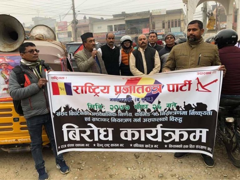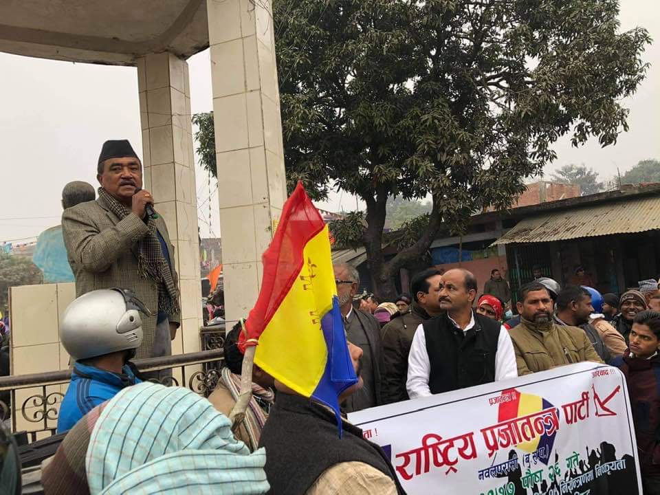 नवलपरासी – राष्ट्रिय प्रजातन्त्र पार्टी (राप्रपा) का नेता ध्रुवबहादुर प्रधानले जनताको चाहना र राष्ट्रको आवश्यकता बमोजिम हिन्दुराष्ट्र पूनःस्थापना गर्नु आवश्यक रहेको बताएका छन् । राप्रपाका सचिवालय प्रमुख प्रधानले महेशपुरमा आयोजित विरोध र्यालीलाई सम्बोधन गर्दै सो बताएका हुन् ।