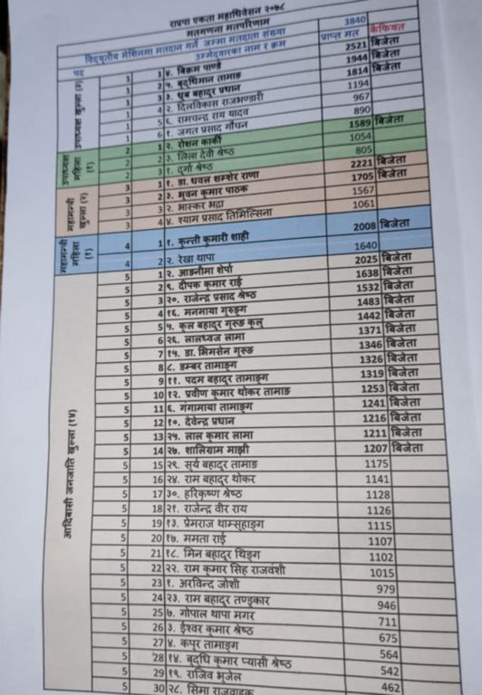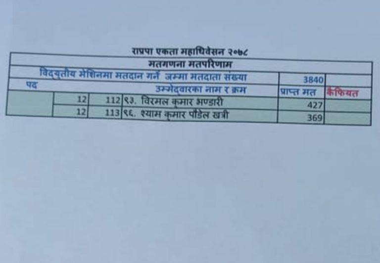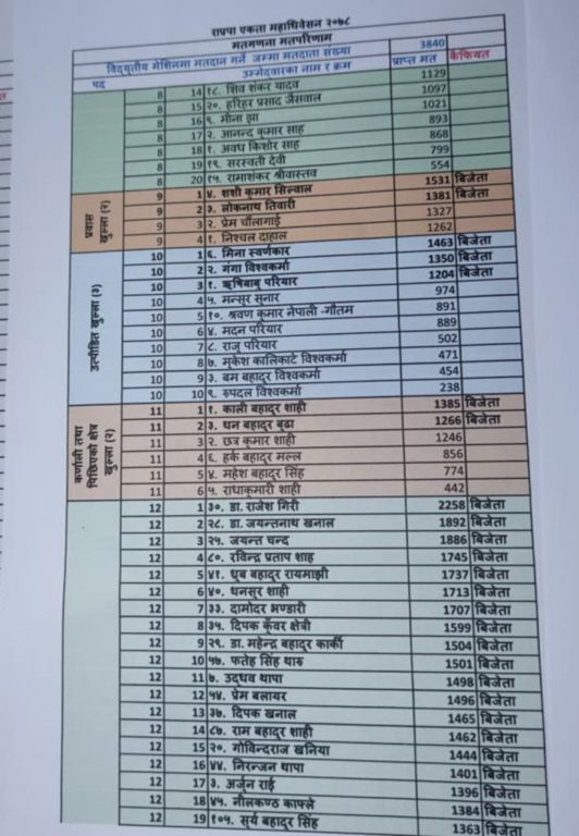 राप्रपा पदाधिकारीमा को–को भए विजयी ? (मतपरिणाम)