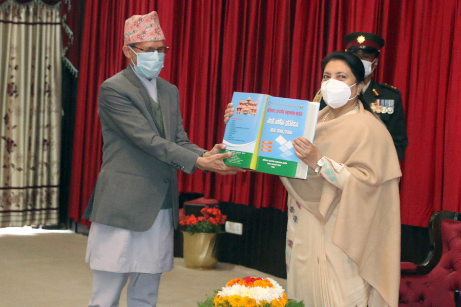 नेपालको संविधानको धारा २९४ बमोजिम आज सो प्रतिवेदन प्रस्तुत गरिएको कार्यालयका सहायक प्रवक्ता केशवप्रसाद घिमिरेले विज्ञप्तिमार्फत जानकारी दिएका छन् ।