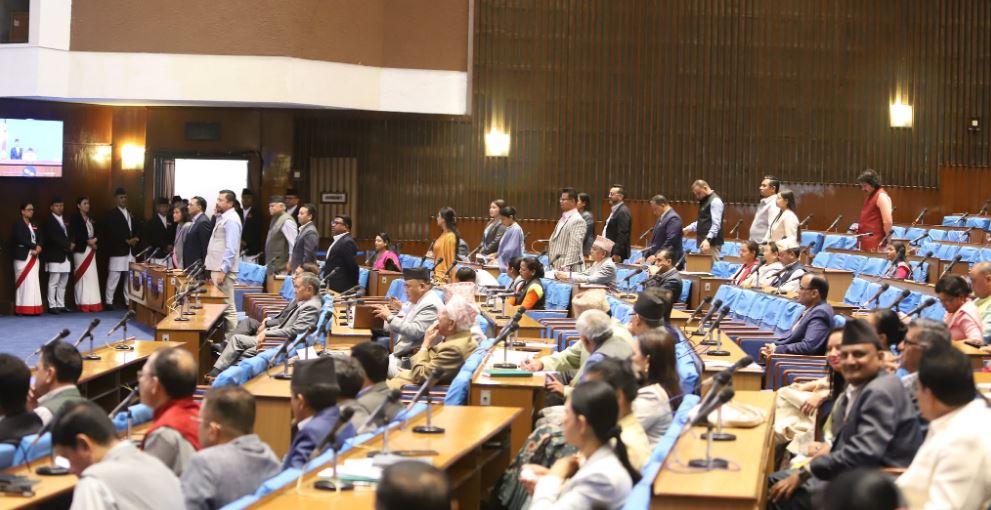 सभामुख देवराज घिमिरेले बैठक सुरु भएको जानकारी गराउँदै लगत्तै रास्वपा र राप्रपाका सांसदहरूले विरोध स्वरूप उठेर बैठक बहिस्कार गरे।