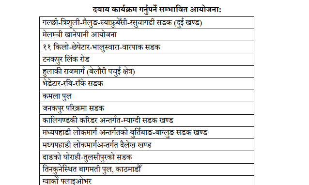 यी २७ वटा विकास आयोजनामा रास्वपाले दबाब यात्रा गर्ने