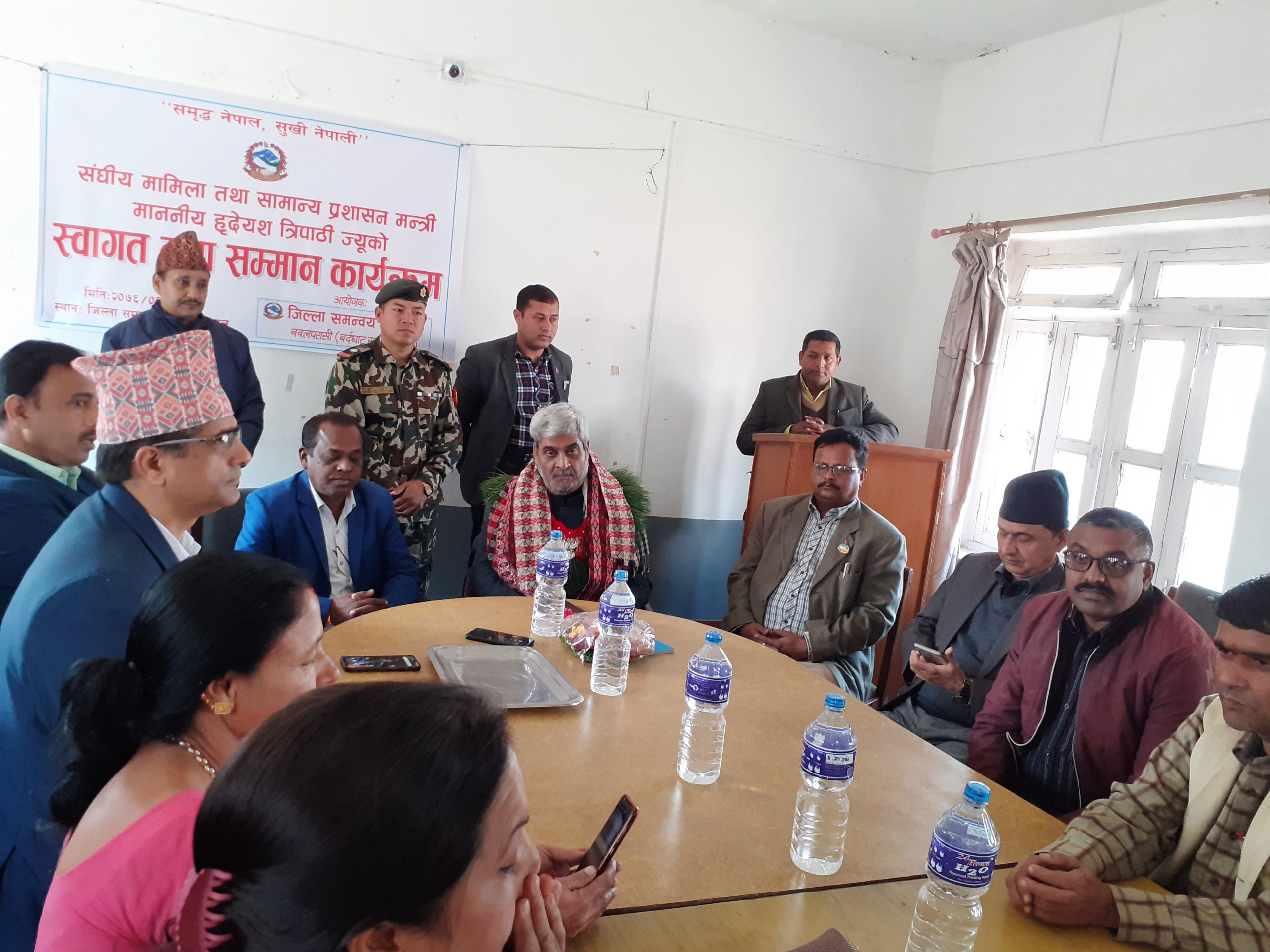 यस्तै जिल्ला समन्वय समिति पश्चिम नवलपरासीले आजै परासीमा गरेको स्वागत तथा सम्मान कार्यक्रममा मन्त्री त्रिपाठीले शासकीय मनोविज्ञानले भन्दा सेवाको मनोविज्ञानले काम गर्न स्थानीय तहका जनप्रतिनिधिलाई आग्रह गरे ।