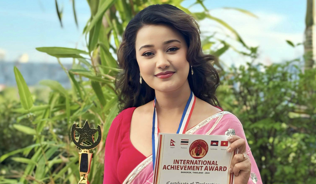 काठमाण्डु – नेपाली कलाकार रियासा दाहाल अन्तर्राष्ट्रिय अवार्डबाट सम्मानित भएकी छन् ।