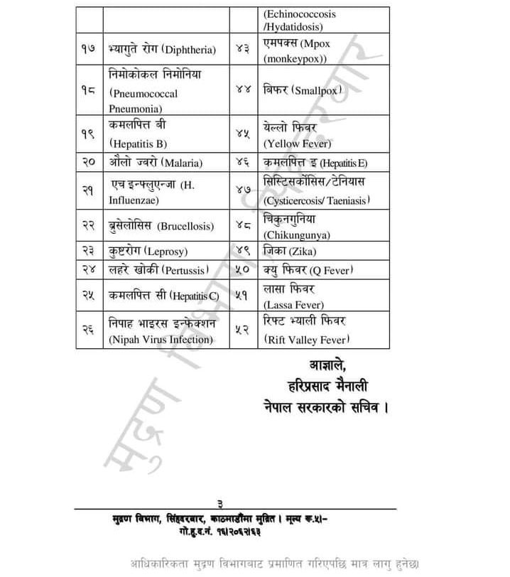 यी हुन् सरकारले संक्रामकको सूचीमा राखेका ५२ वटा रोग
