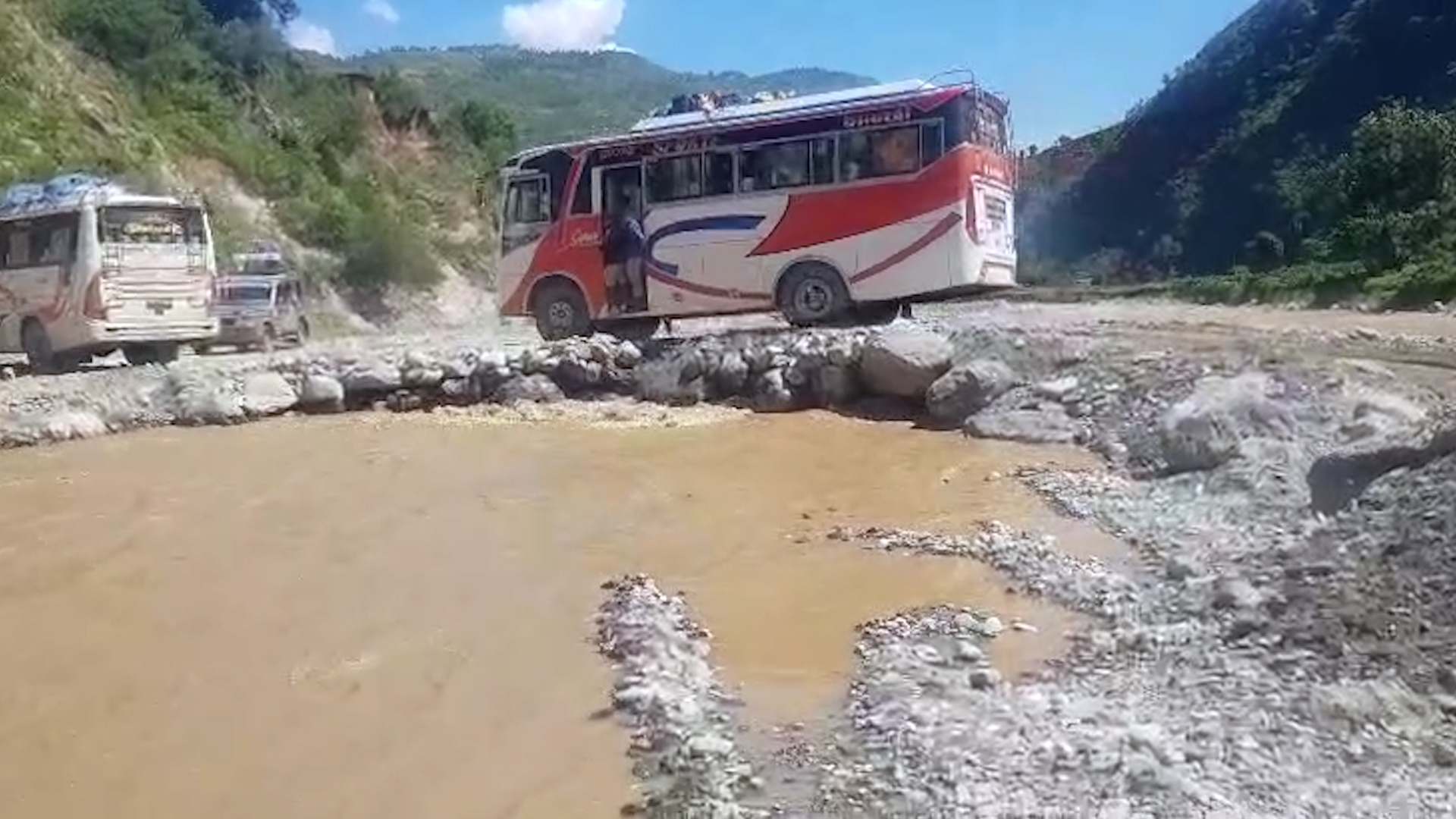 लुभुघाटस्थित रोसी खोलामा अस्थायी वैकल्पिक मार्ग निर्माण गरी यातायात साधन सञ्चालन गरिएको हो ।