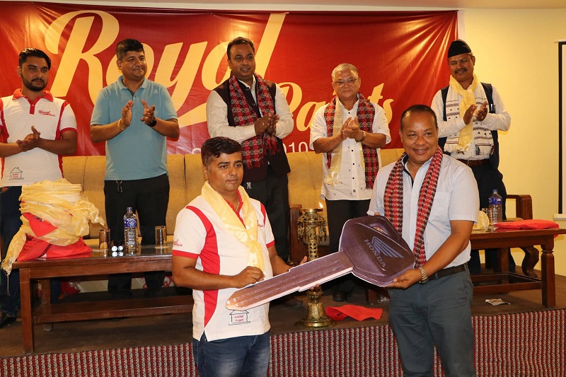 रंङ उत्पादनको क्षेत्रमाम छोटो समयमा नै लोकप्रिय बन्न सफल रोयल पेन्ट्सले पर्यटकीय नगरी सौराहामा शनिबार आयोजना गरेको डिलर मिट कार्यक्रममा गरिएको लक्की ड्र मार्फत ३५० सिसिको बुलेट बाईक शाहले जितेका हुन् ।