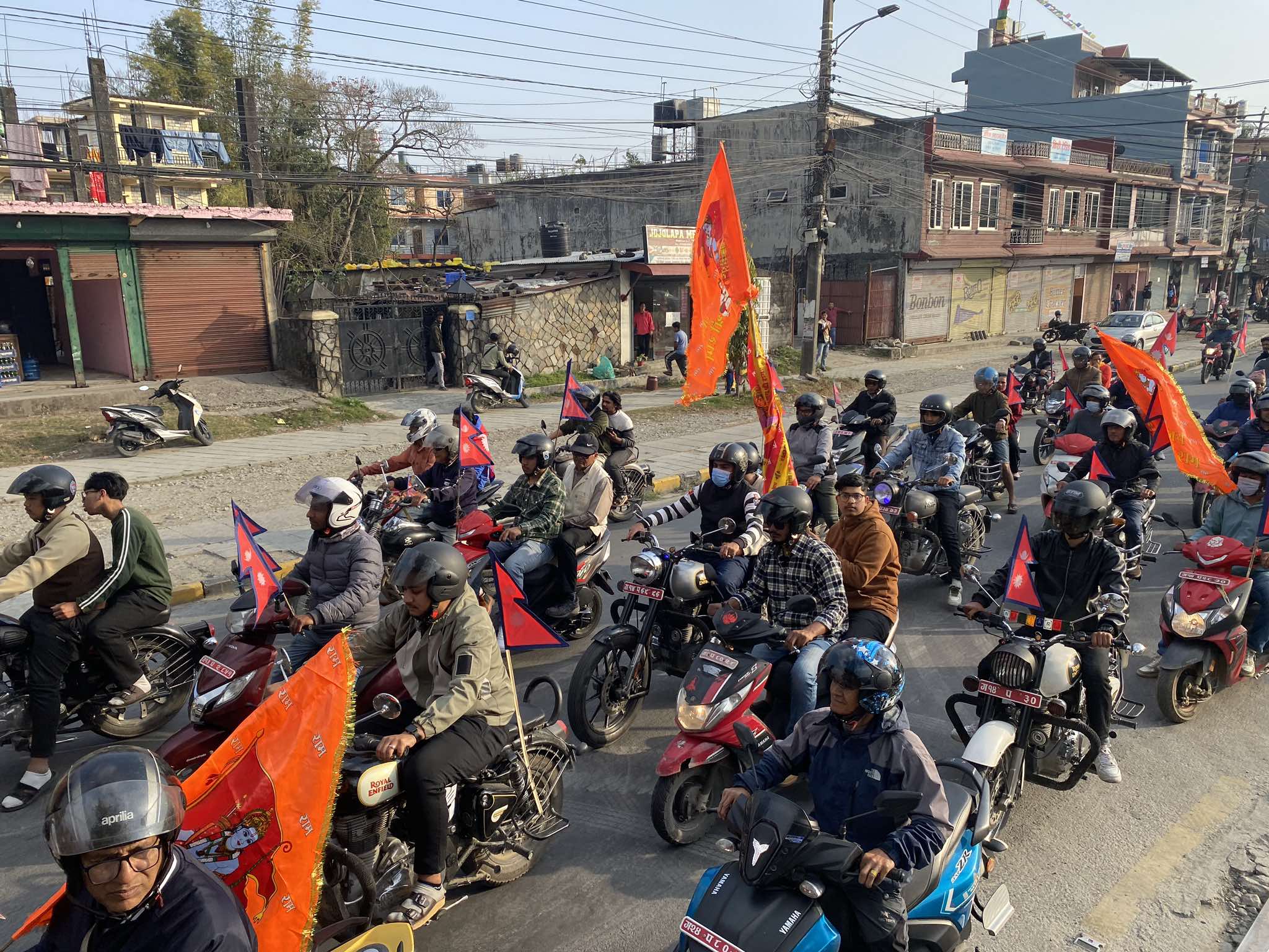 मंगलबार राप्रपाद्वारा आयोजित बृहत् मोटरसाइकल र्यालीलाई सम्बोधन गर्दै उनले भने, ‘फागुन महिनामा देशव्यापी रूपमा आ–आफ्नो कार्यक्रम गरे पनि चैतमा राजा, सनातन धर्म चाहने सबै दल, समूह, संस्था एक ठाउँ आएर काठमाण्डु केन्द्रीत आन्दोलनमा जुट्नेछन् ।’
