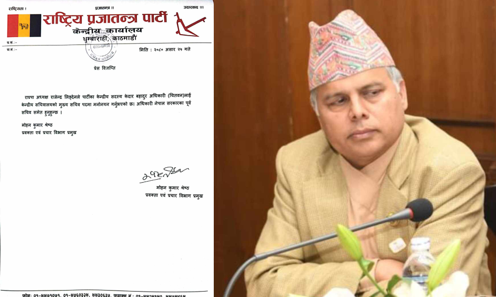 काठमाण्डु – राप्रपाको केन्द्रीय सचिवालयका मुख्यसचिवमा केन्द्रीय सदस्य केदारबहादुर अधिकारीलाई मनोनीत गरिएको छ ।