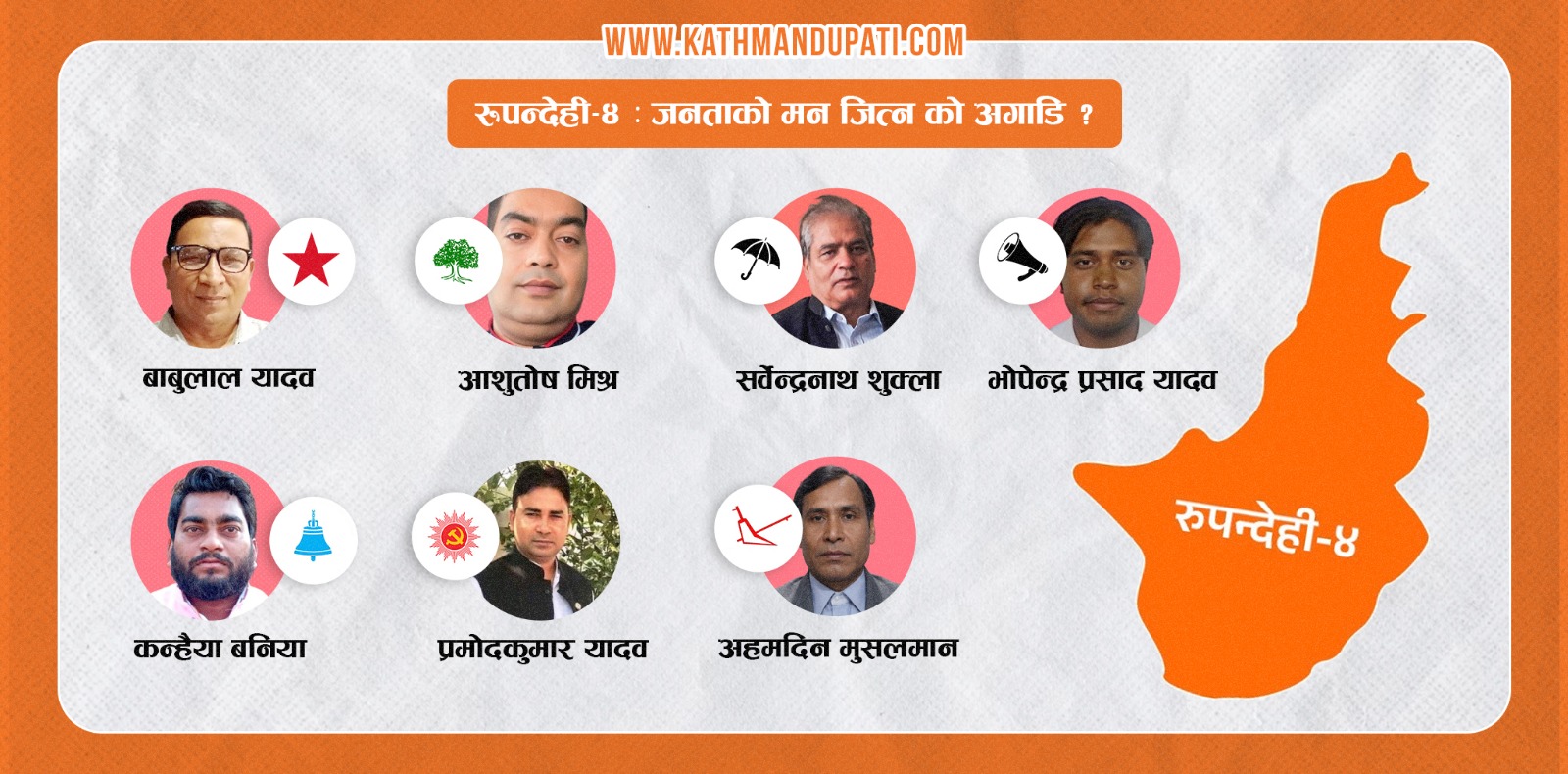 रास्वपाका उम्मेदवार कन्हैया बनिया २०७९ को निर्वाचनमा रुपन्देही ४(क) मा तत्कालीन लोसपाबाट प्रदेशसभा सदस्यमा निर्वाचित भएका थिए । उनी प्रदेशसभा सदस्यबाट राजीनामा दिएर चुनावी मैदानमा खडा भएका हुन् ।