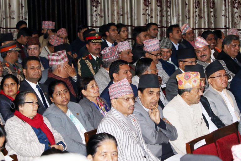 समारोहमा उपराष्ट्रपति नन्दबहादुर पुन, प्रधानमन्त्री केपी शर्मा ओली, प्रधानन्यायाधीश चोलेन्द्र शम्शेर जबरा, राष्ट्रियसभाका अध्यक्ष गणेशप्रसाद तिमिल्सिना सहभागी थिए । त्यस्तै उपप्रधानमन्त्री ईश्वर पोखरेल, पूर्वप्रधानमन्त्री एवं नेपाल कम्युनिष्ट पार्टी (नेकपा) का अध्यक्ष पुष्पकमल दाहाल ‘प्रचण्ड’, मन्त्रिगण, सांसद, संवैधानिक अङ्गका पदाधिकारी, सुरक्षा निकायका प्रमुख, उच्च सरकारी अधिकारीलगायतको सहभागिता रहेको थियो ।
