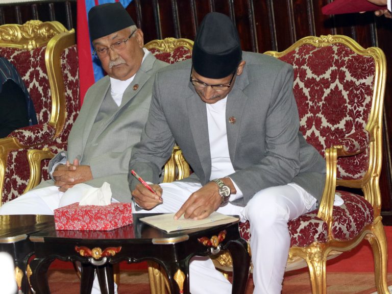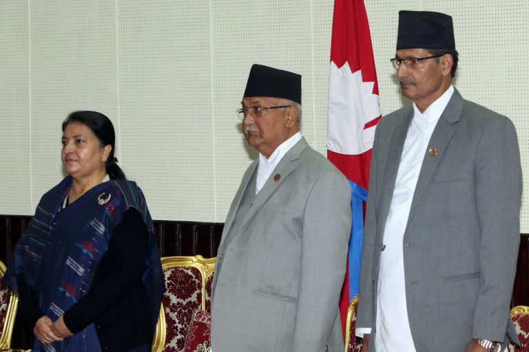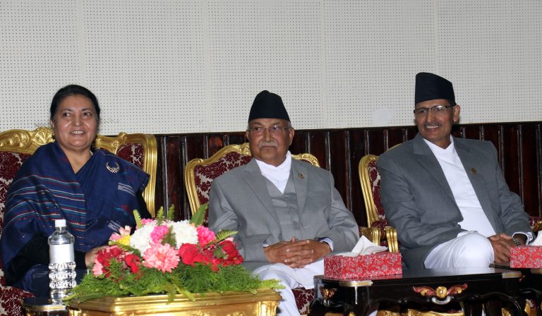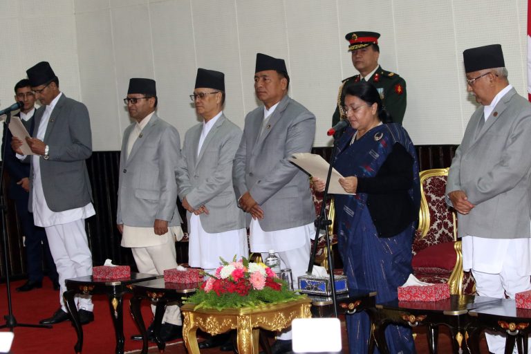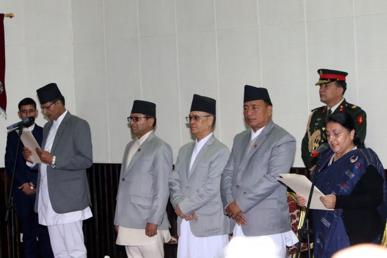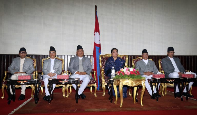 काठमाडौं – राष्ट्रपति विद्यादेवी भण्डारीले प्रतिनिधिसभाका नवनिर्वाचित सभामुख अग्निप्रसाद सापकोटालाई आज पद तथा गोपनीयताको शपथ गराएकी छन् । राष्ट्रपति कार्यालय शीतल निवासमा आयोजित समारोहमा सभामुख सापकोटाले नेपालको संविधानबमोजिम राष्ट्रपतिबाट शपथ लिएका हुन् ।