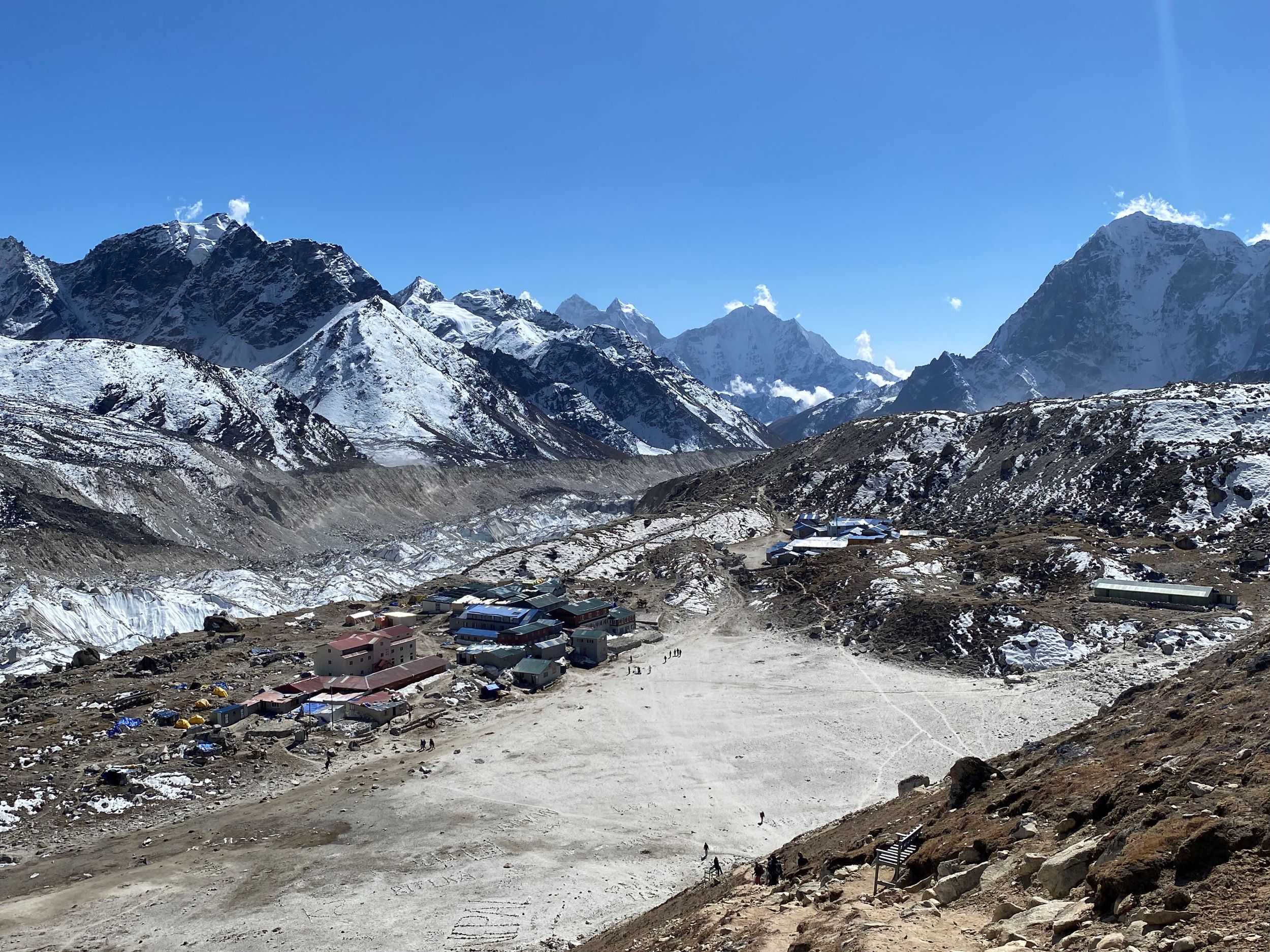 सर्वोच्च शिखर सगरमाथा दृश्यावलोकन गर्ने स्थान कालापत्थर जाने क्रममा थकान मेट्न चिया पिउँदै सगरमाथालगायतका हिमाल हेर्दै पर्यटक ।