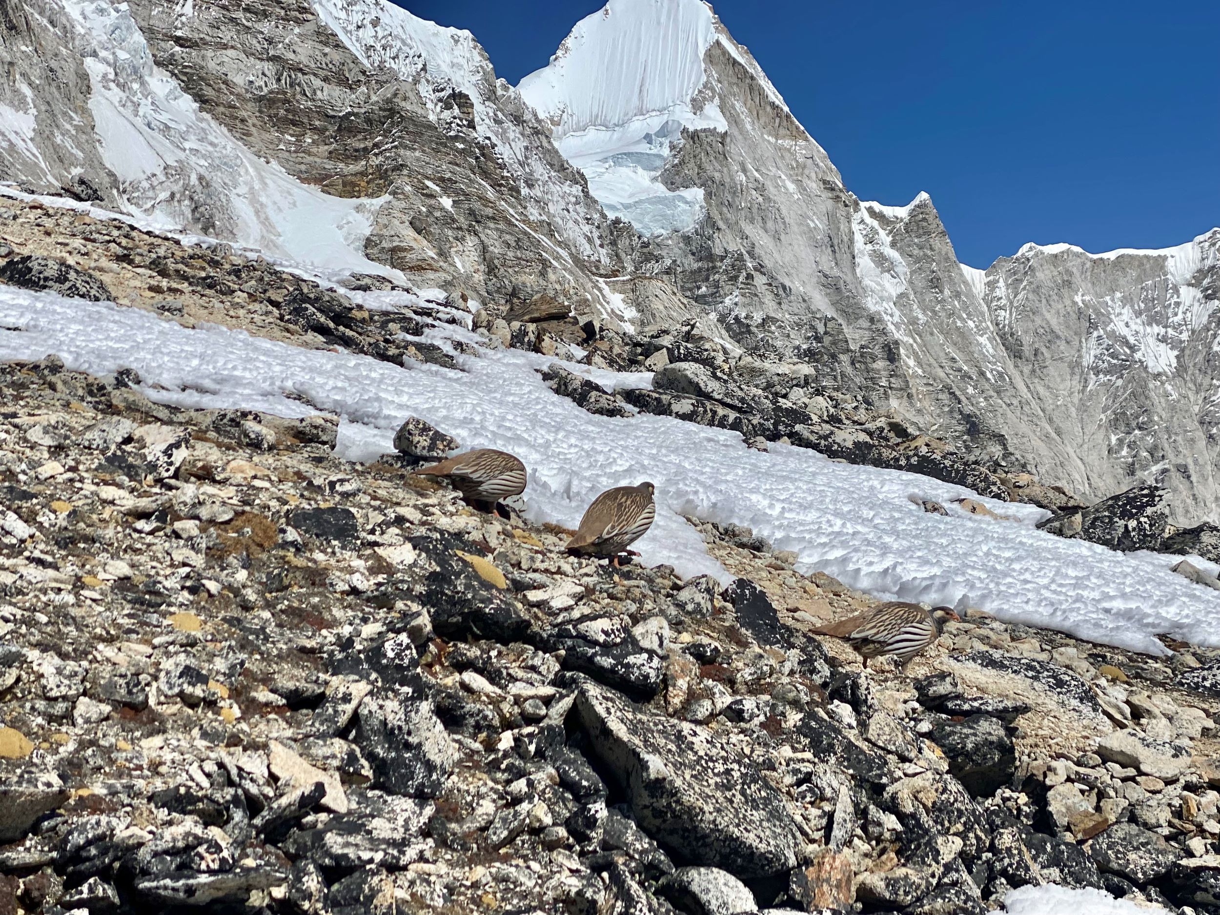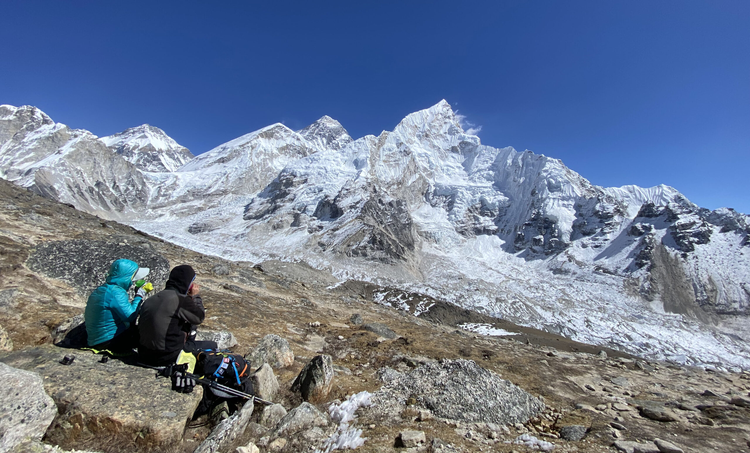 सर्वोच्च शिखर सगरमाथा दृश्यावलोकन गर्ने स्थान कालापत्थर जाने क्रममा थकान मेट्न चिया पिउँदै सगरमाथालगायतका हिमाल हेर्दै पर्यटक ।