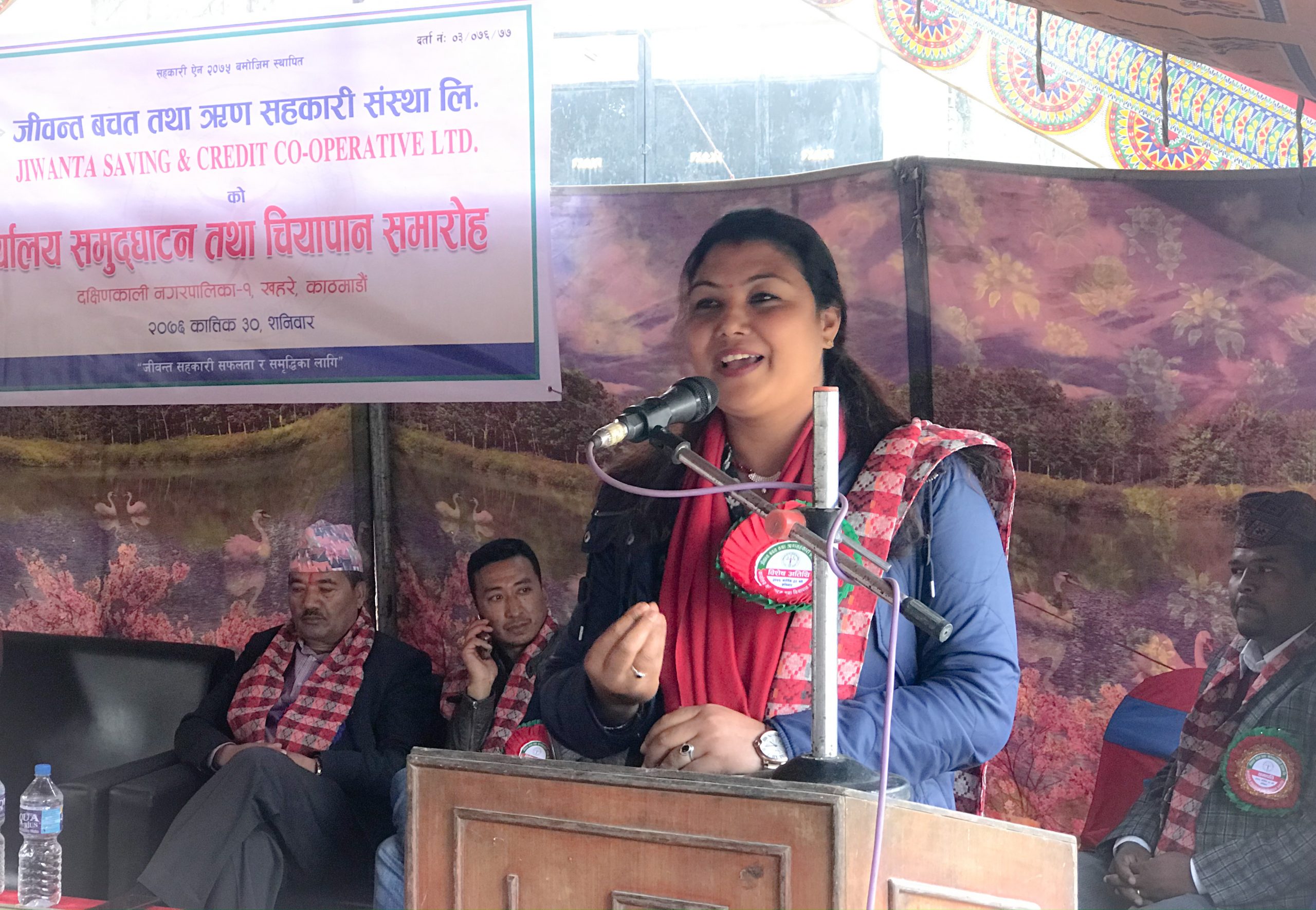 सोमबार जीवन्त बचत तथा ऋण सहकारी संस्थाको उद्घाटन तथा कारोबार सुभारम्भ कार्यक्रममा बोल्दै उप–प्रमुख तामाङले अहिले सहकारीहरुको पछिल्लो लगानी उत्पादनमुलक क्षेत्रमा भन्दा नुन र सुन किन्ने नाममा ऋण प्रवाहमा केन्द्रित भएकाले बेलैमा सजग हुन समेत आग्रह गरिन् ।