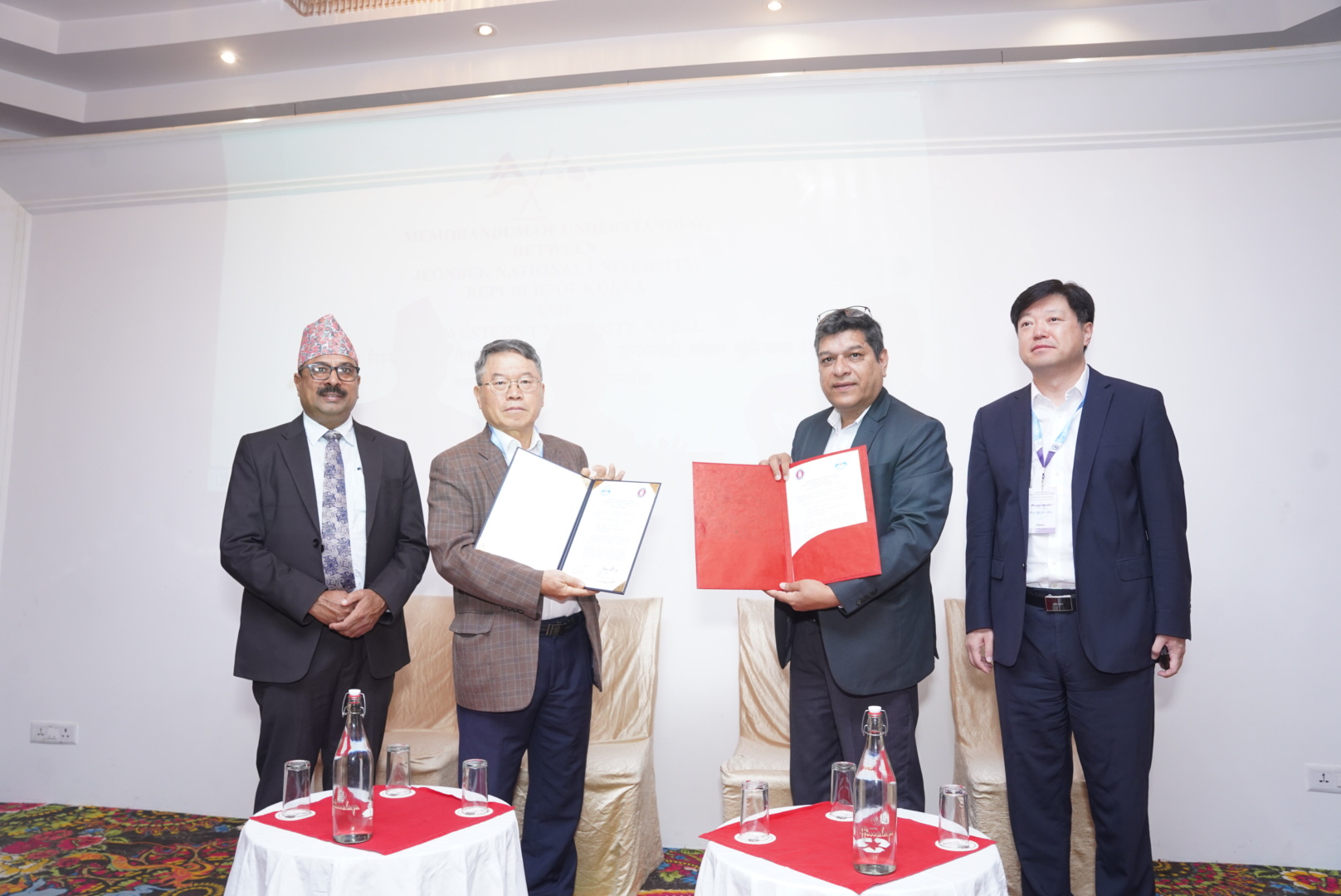 ललितपुर– सुदूरपश्चिम विश्वविद्यालय र दक्षिण कोरियाको जोनबुक नेसनल युनिभर्सिटीबीच शैक्षिक कार्यक्रममा सहकार्य गर्ने सम्बन्धको समझदारीपत्र आदानप्रदान गरिएको छ ।