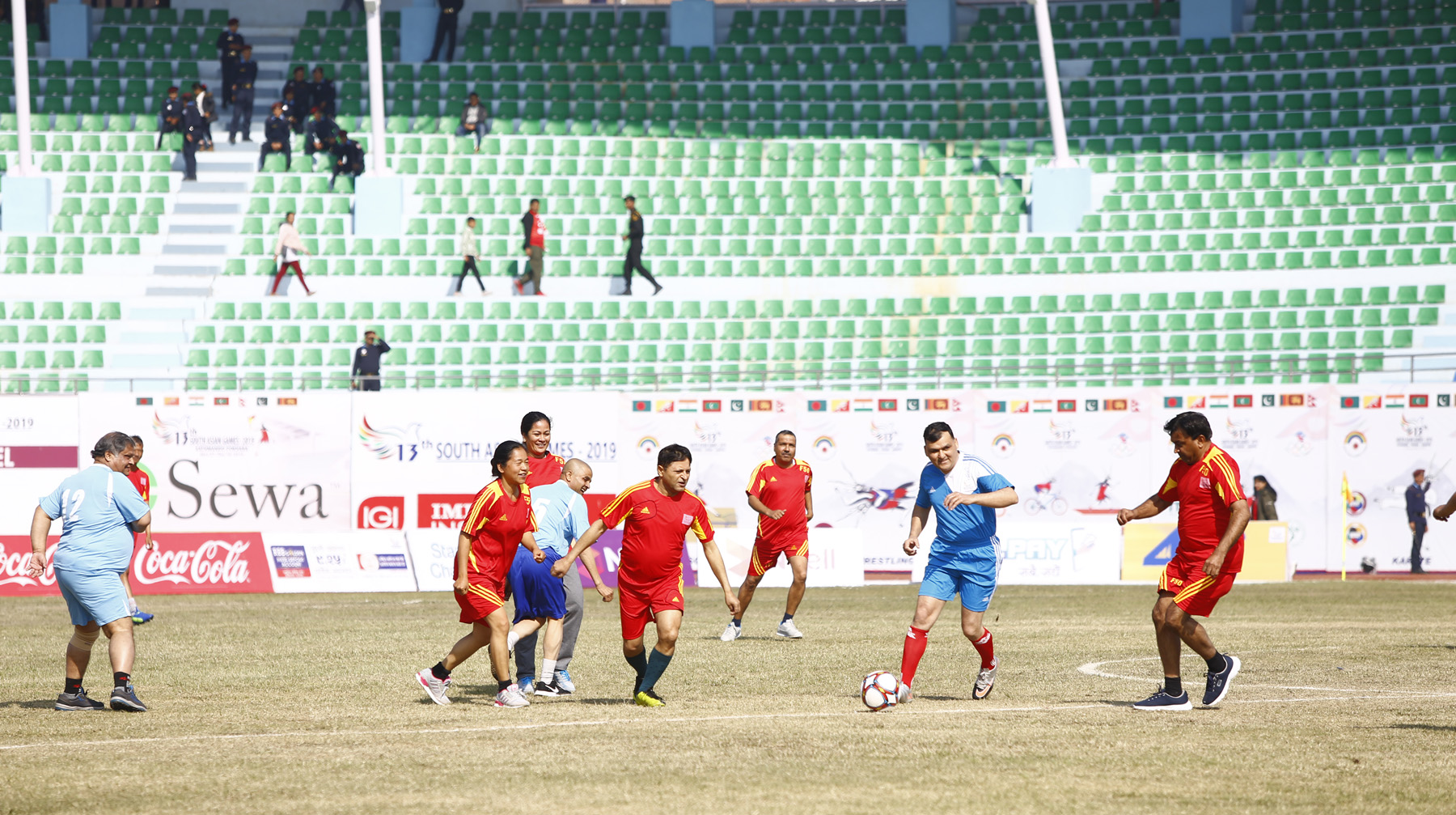 साग अन्र्तगत फुटबलको फाइनल खेलपूर्ण दशरथ रंगशालामा गरिएको मैत्रीपूर्ण खेल ४–० गोल अन्तरमा टुङ्गिएको संघीय संसदका सह प्रवक्ता दशरथ धमलाले जानकारी दिए । ३० मिनेटको सो प्रतिस्पर्धामा संघीय संसदका नायव सुब्बा निरज पन्थीले १ गोल र हलुका सवारी चालक राजेन्द्र महर्जनले २ गोल गरेका थिए ।