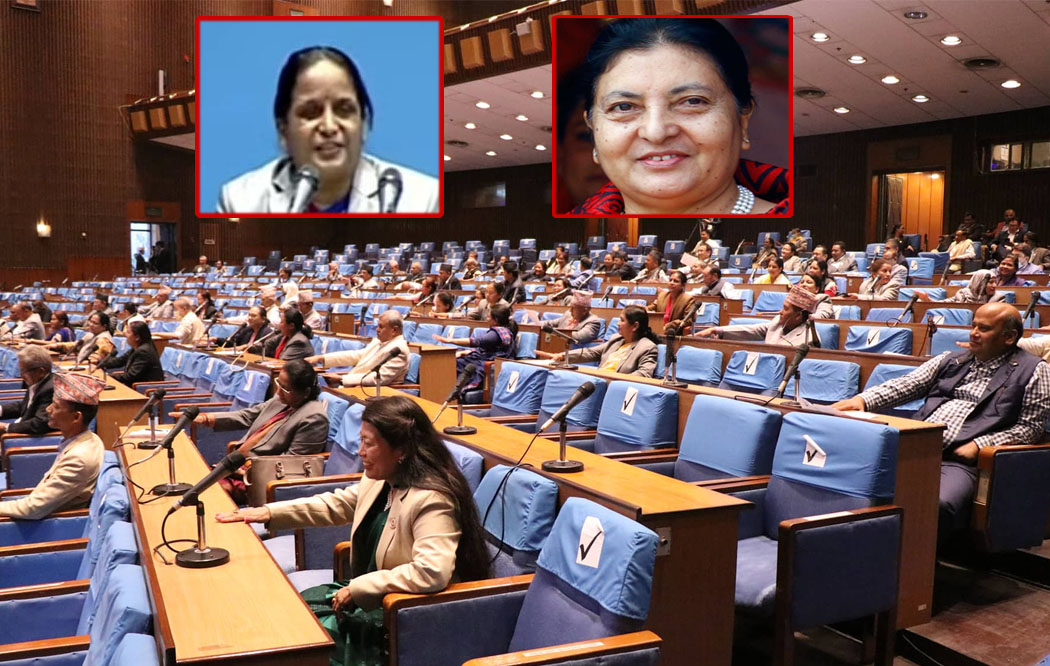‘केपी शर्मा ओलीले लगभग दुई तिहाइ नजिकको सरकार तीन वर्ष चलाउनु भयो। २२ महिनासम्म नागरिकता विधेयक समितिमा छलफल भयो तर विधेयकका रूपमा उहाँले संसदमा ल्याउनुभएन । जब प्रधानमन्त्रीको कुर्सी हल्लियो तब उहाँले त्यही अहिले सरकारले विधेयकको रूपमा ल्याएर पास गरेको नागरिकता विधेयकलाई अध्यादेशको रूपमा ल्याउनु भयो। र, राष्ट्रपतिज्यूले त्यो अध्यादेशलाई लालमोहर लगाउनु भयो। तर आज त्यही अध्यादेशको रूपमा केपी शर्मा ओलीज्यूले ल्याउनुभएको विधेयक संसदमा आयो र पास भएर गयो तर उहाँले लालमोहर लगाउनु भएको छैन। यो विडम्बना। राष्ट्रपतिजस्तो गरिमामय पदमा बसेर राष्ट्रपति राष्ट्रको हुन्छ कि कुनै पार्टीको हुन्छ?’, उनले भनिन् ।
