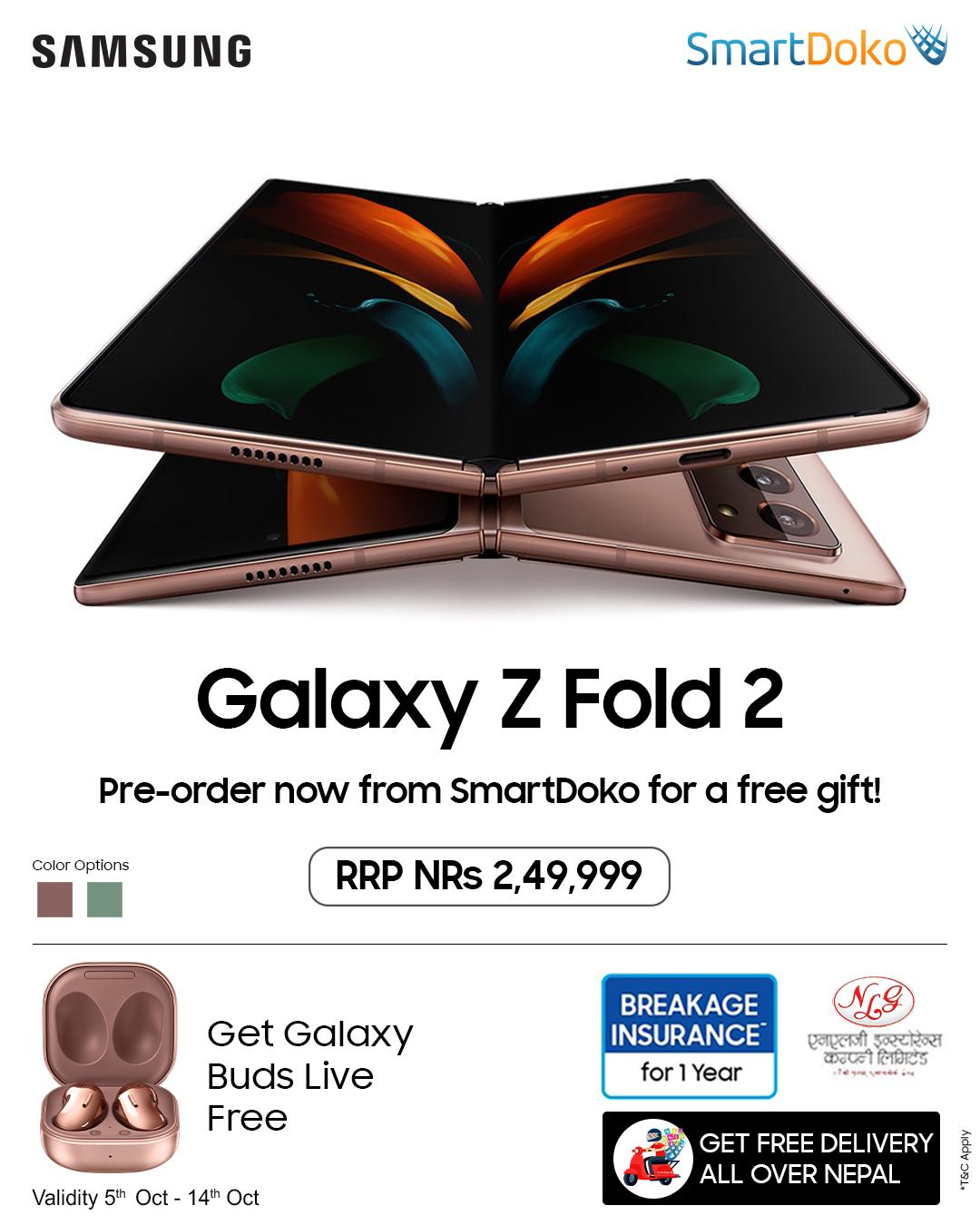 सामसुङ ग्यालेक्सी जेड फोल्ड–२ https://cms-prd.mygalaxy-nbs.com/Nebangs-NP-N20-Preorder/वेभसाइटमा गएर प्रि–बुक गर्न सकिने कम्पनीले जनाएको छ । त्यसैगरी ९८०१०१३३११ र ९८०२००२८७० मा पनि सम्पर्क गर्न सकिनेछ । ग्राहकहरुले ५,००० प्रि–बुकिङ्गको लागि भुक्तानी गर्नुपर्नेछ र बाँकी ह्यान्ड सेट पाएपछि भुक्तानी गर्न सकिने कम्पनीले जनाएको छ ।