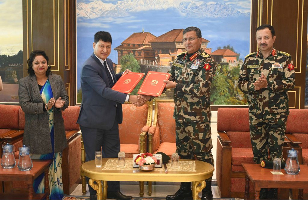 काठमाडौं – प्रधानसेनापति पूर्णचन्द्र थापा र काठमाडौं महानगरपालिकाका मेयर विद्यासुन्दर शाक्यबीच बुधबार नागरिकलाई मृगौला उपचारसम्बन्धी सेवा उपलब्ध गराउने समझदारी पत्रमा हस्ताक्षर भएको छ ।