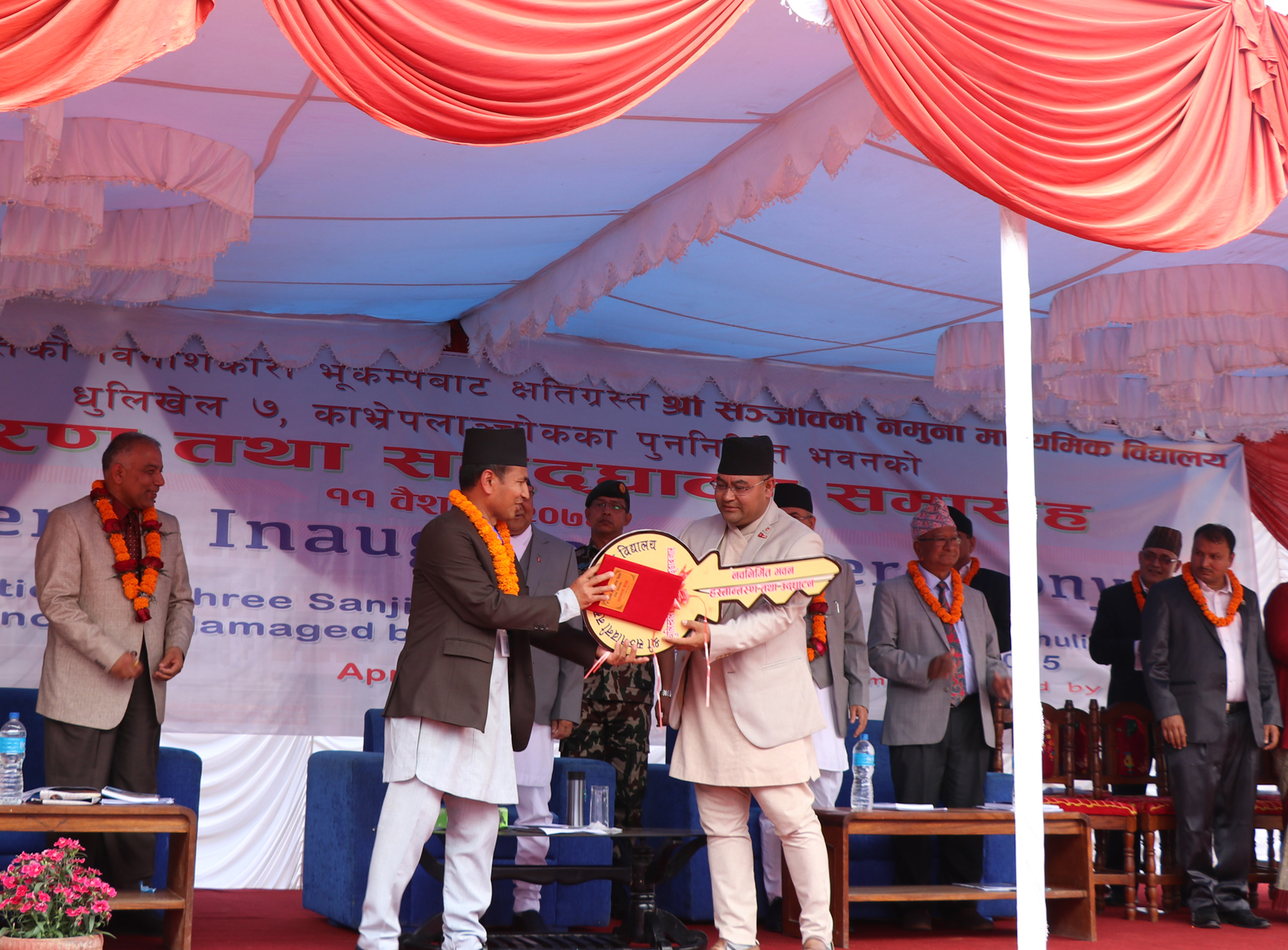 कार्यक्रममा प्रधानमन्त्री केपी शर्मा ओलीले भूकम्प प्रतिरोधी संरचना सहित सुविधा सम्पन्न विद्यालय बनेकोमा खुशी व्यक्त गरे। उनले पुनर्निर्माणले गति लिएको भन्दै भूकम्पबाट क्षति भएका बाँकी संरचनाहरुको पनि पुनर्निर्माण गर्ने बताए।