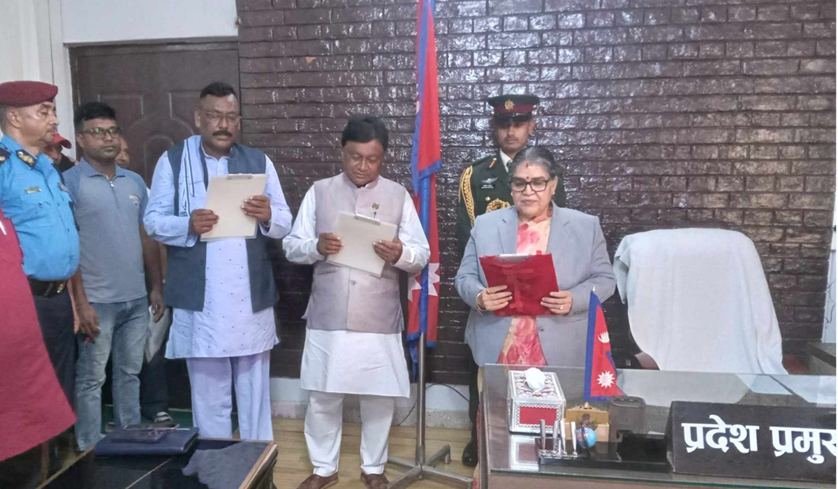 उनीहरुलाई प्रदेश प्रमुख सुमित्रा सुवेदी भण्डारीले पद तथा गोपनियताको सपथ गराएकी हुन् । यससँगै अब मधेशको मन्त्रिपरिषद् १६ सदस्यीय भएको छ ।