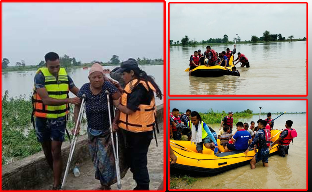 बाढीमा फसेका बेलका नगरपालिका- ३ र बराह क्षेत्र नगरपालिकाका ६ र ९ का २ हजार ४०० घरधुरीलाई सशस्त्र प्रहरी, नेपाल प्रहरी, नेपाली सेना स्थानीयवासीको सहयोगमा ५ वटा बोटबाट उद्धार गरिएको सशस्त्र प्रहरी बल ५ नम्बर गणका गणपति सशस्त्र प्रहरी उपरीक्षक कृष्णराज अधिकारीले जानकारी दिए ।