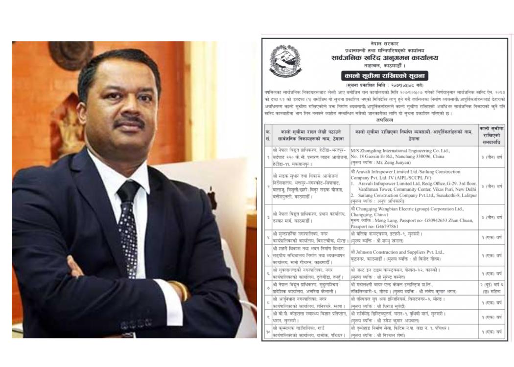 बुधबार सार्वजनिक खरिद अनुगमन कार्यालयले सूचना जारी गर्दै नेकपा माओवादी केन्द्रका अध्यक्ष प्रचण्डका घरबेटी शारदा प्रसाद अधिकारीको निर्माण कम्पनी शैलुङसहित १० वटा निर्माण कम्पनीलाई कालो सूचीमा राखेको जानकारी दिएको हो ।