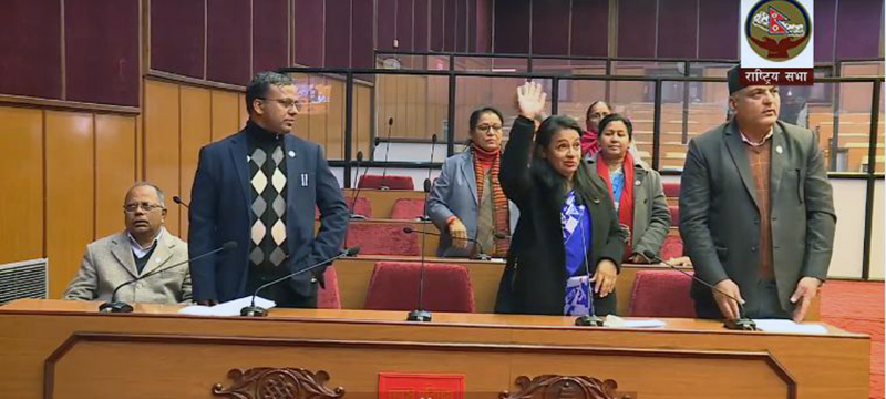 सोमबारको राष्ट्रिय सभा बैठक सुरु हुना साथ काँग्रेसका सांसदहरूले ढ्यापढ्याप गरी समय मागेका थिए । त्यसपश्चात उक्त समयमा बोल्दै काँग्रेस सांसद सरिता प्रसाईँले भनिन्, ‘सरकारले जनता र प्रतिपक्षसँग निहुँ मात्र खोजेको छ ।