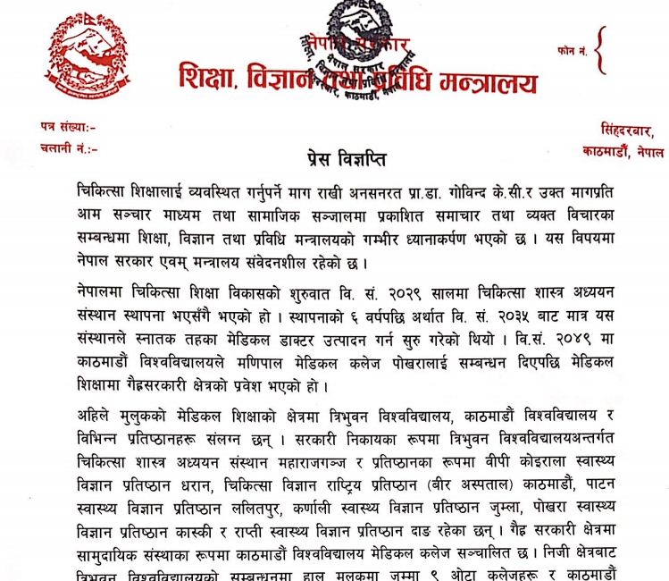 यस्तो छ सरकारले जारी गरेको विज्ञप्तीको पुर्ण पाठ–