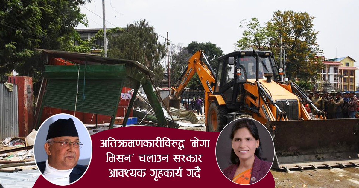 अहिले राजनीतिक अस्थिरता छैन । राजनीतिक अस्थिरतालाई देखाएर पन्छिने उपाय पनि छैन । शक्तिशाली मानिएको स्थिर सरकारले सार्वजनिक जग्गा जोगाउन, अतिक्रमण रोक्ने र विगतमा भएका अतिक्रमित जग्गा फिर्ता गर्ने अभियान देशभर नै चलाउने संकेत दिएको छ । ‘मेगा मिसन’ चलाउन सरकारले आवश्यक गृहकार्य समेत गरिरहेको छ ।