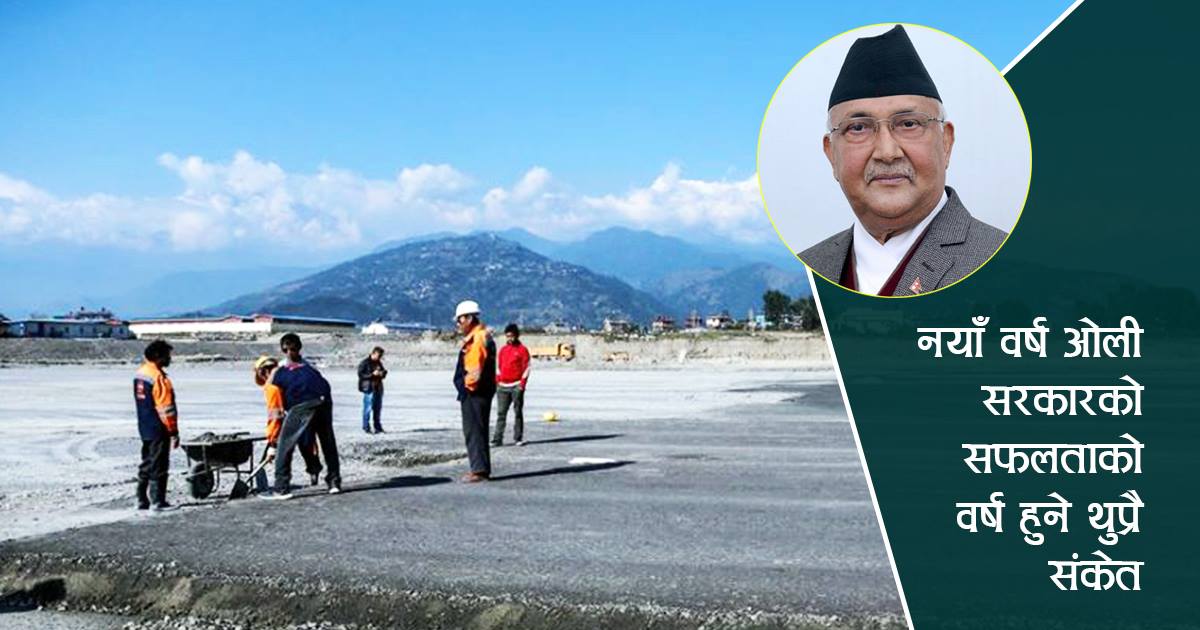 अपेक्षाअनुसार पहिलो वर्ष सरकारले काम गर्न नसकेको गुनासो पनि सुन्ने गरिन्छ । हालसालै शुरू भएको नयाँ वर्ष ओली सरकारको सफलताको शुरूवाती वर्ष हुने थुप्रै संकेत देखिएका छन् । ती संकेतलाई हामी क्रमशः प्रस्तुत गर्दै जानेछौं । आजको पहिलो भागमा निर्माणाधीन पोखरा र गौतमबुद्ध अन्तर्राष्ट्रिय विमानस्थलको चर्चा गरौं ।