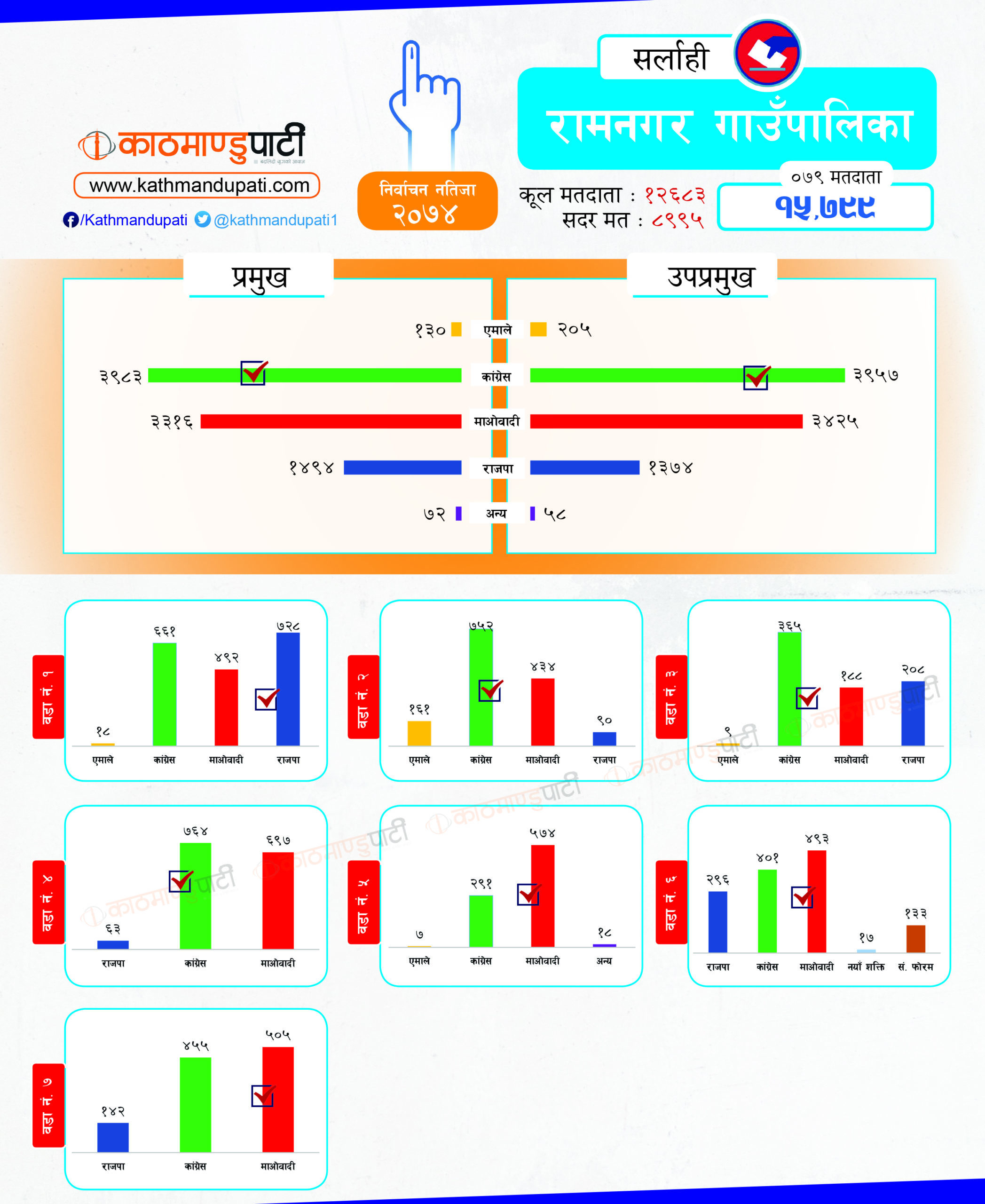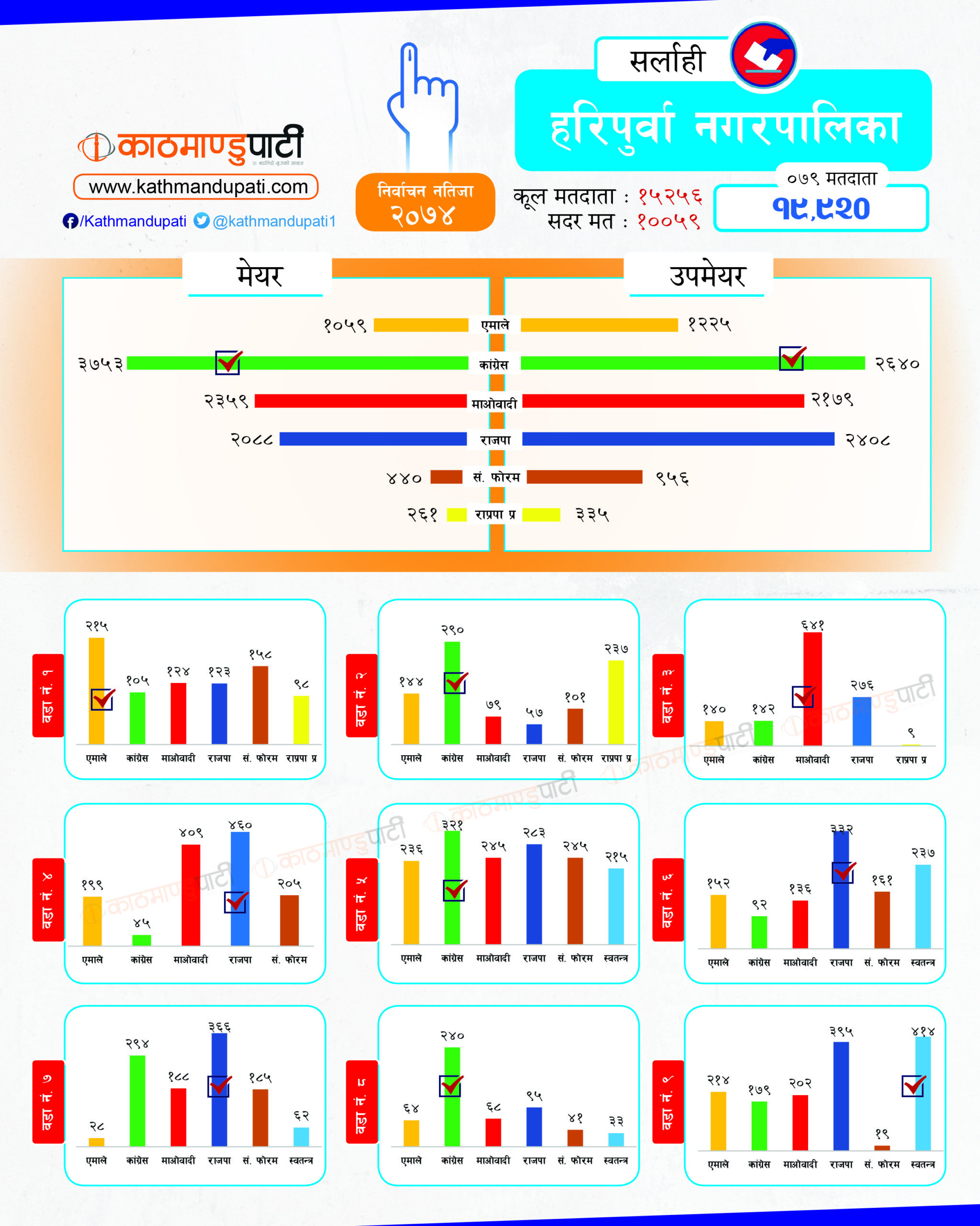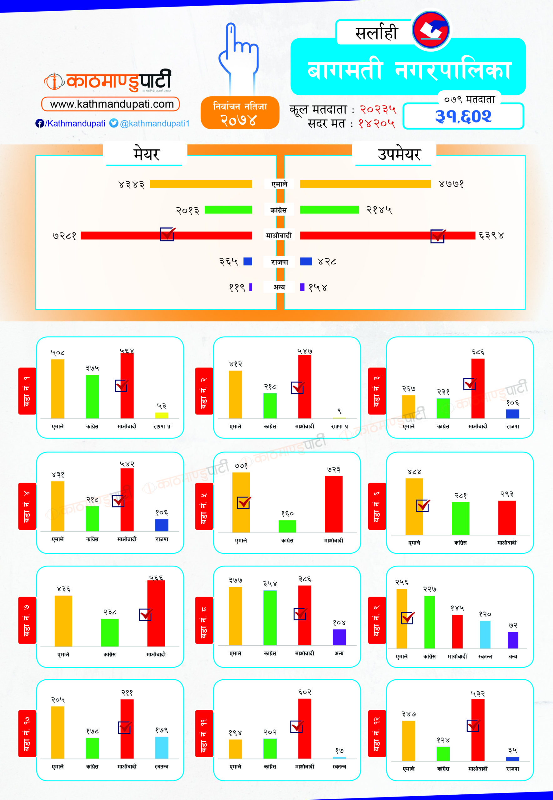 ईश्वरपुर नगरपालिकामा एमालेका मनोजकुमार देवकोटा, हरिवनमा गणेश प्रसाईं फेरि मेयरमा उठेका छन् । बागमती नगरपालिकामा माओवादीका भरतकुमार थापा पनि दोहोरिने दौडमा छन् । कविलासी नगरपालिकामा तत्कालीन राजपाबाट जितेका मेयर कौशलकिशोर राय एमाले प्रवेश गरेर फेरि सोही पदमै उठेका छन् । यसअघि यहाँ राजपा र संघीय फोरमबीच प्रतिस्पर्धा भएको थियो ।