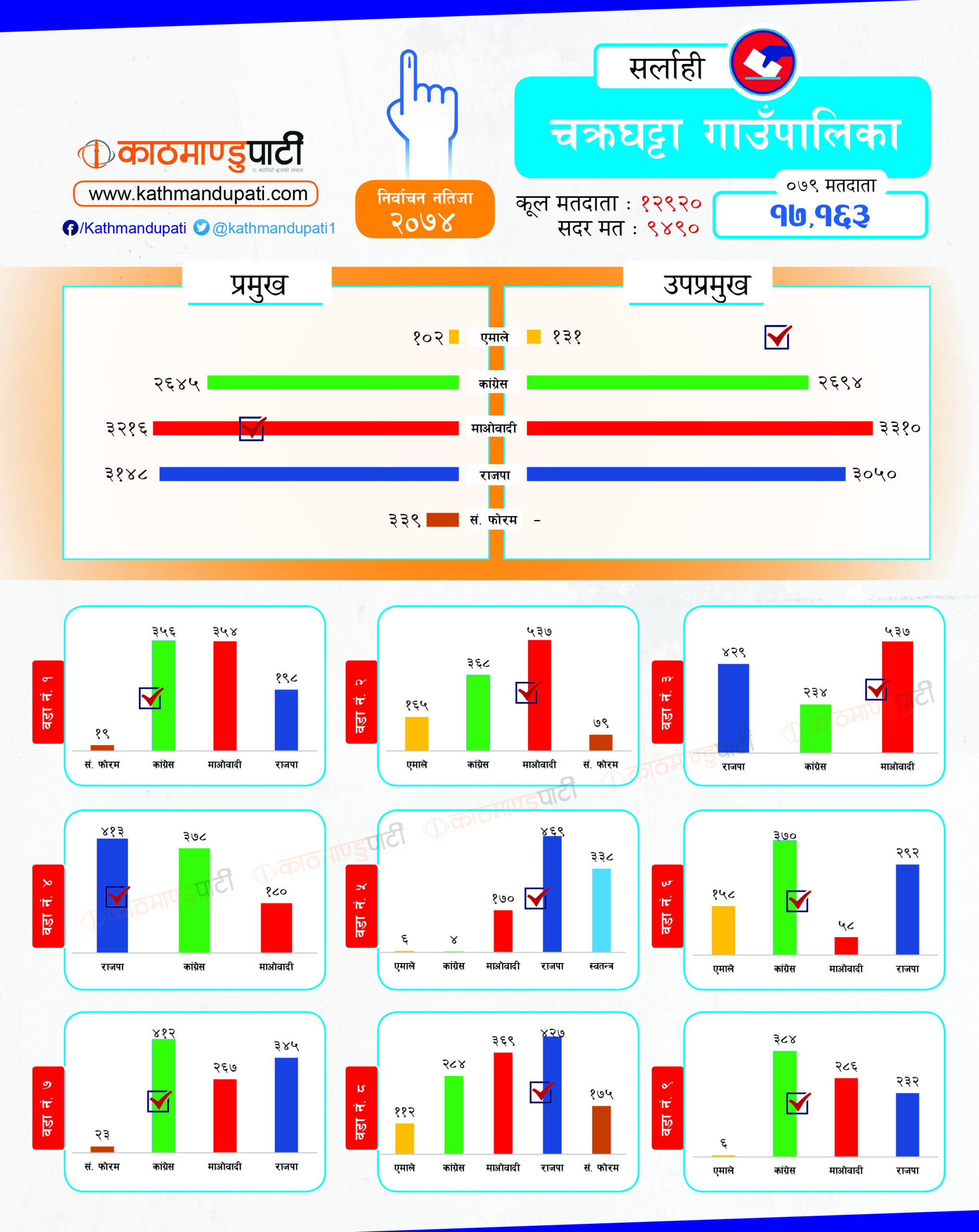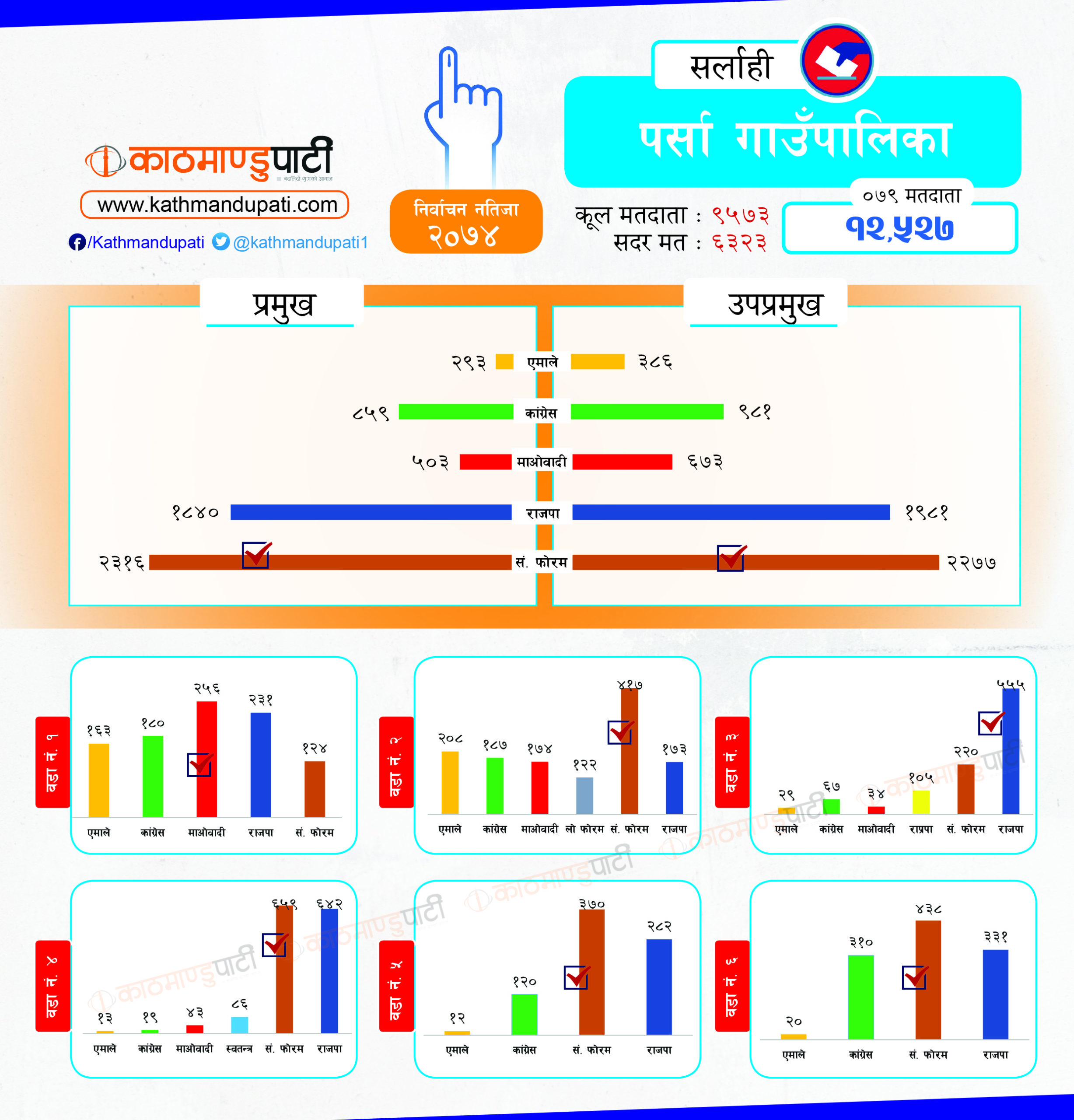सर्लाहीमा आगामी चुनावमा बहुपक्षीय प्रतिस्पर्धा देखिन्छ । एमालेमा आएको विभाजनले परिणाम प्रभावित हुन सक्छ । एमालेले अन्य दलका स्थानीय नेतालाई भित्र्याएर टिकट दिएको छ । यसले विभाजनको असर कम हुने उसको मूल्यांकन छ । माओवादीले एकीकृत समाजावादीसँग मिलेर पुरानो वर्चस्व कायम राख्न खोजेको छ । लोकतान्त्रिक समाजवादी पार्टीलाई यसपटक विगतको नतिजा दोहो¥याउन गाह्रो छ । किनकि हिजो राजपामा रहेका सबै लोसपामा नआई जसपामै बसेका छन् ।