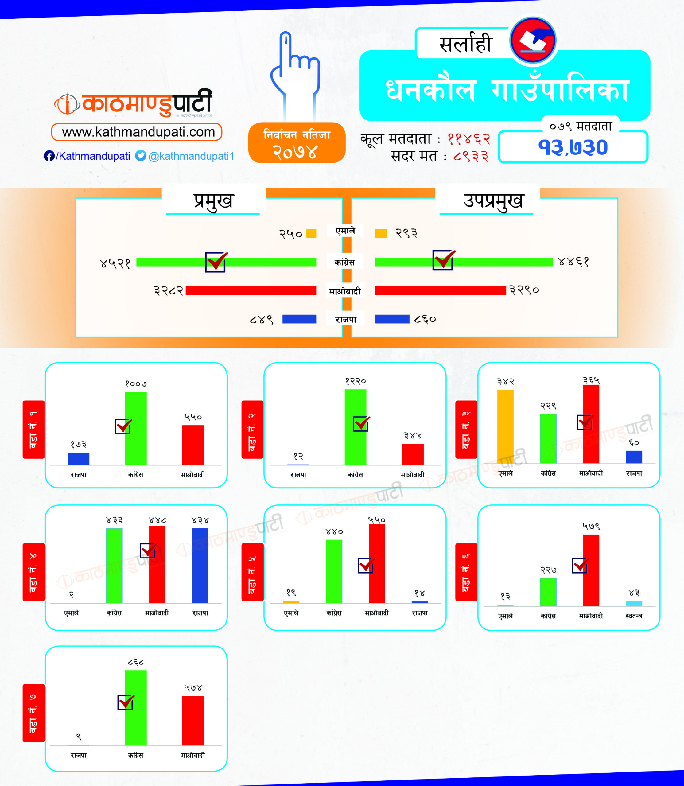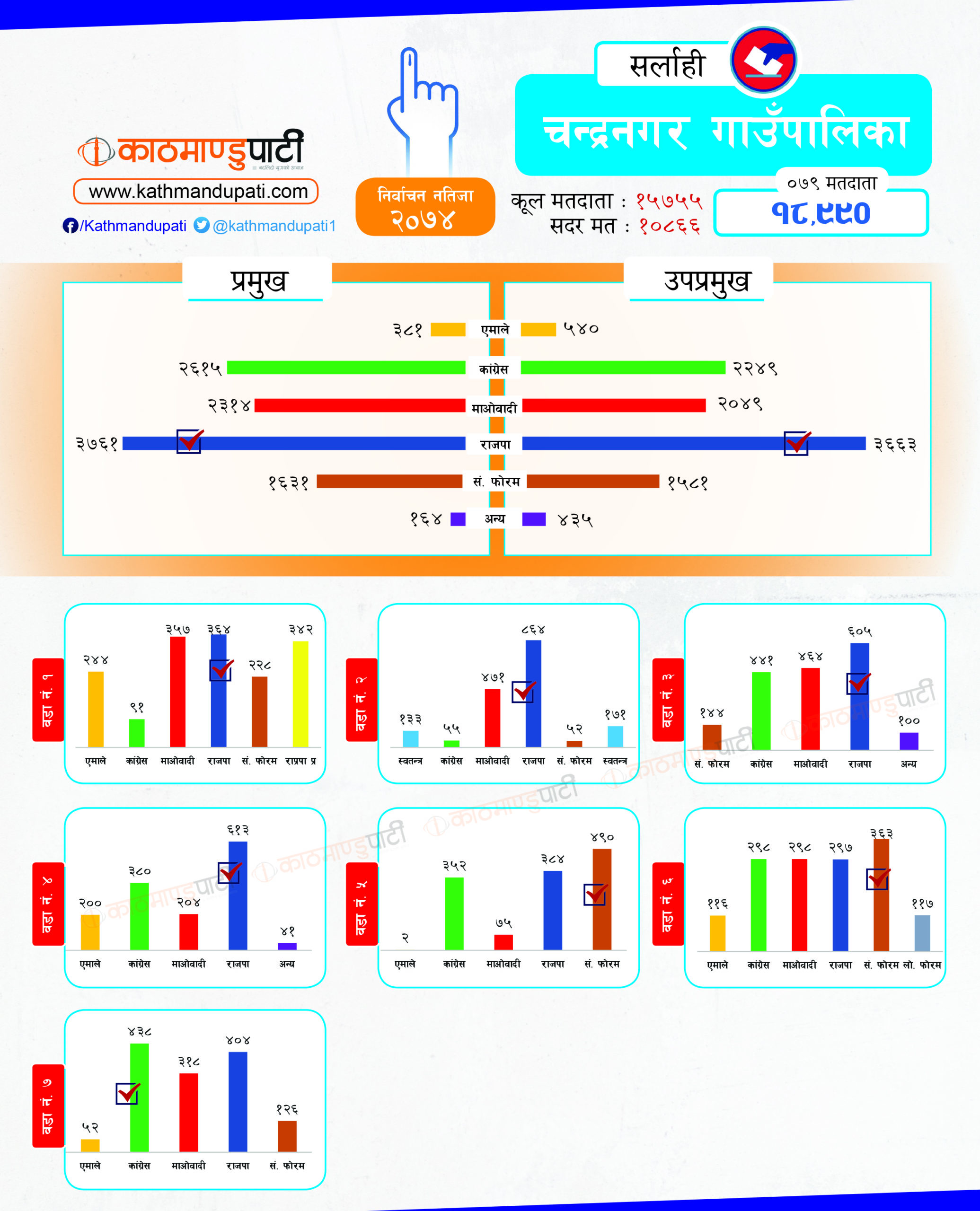 त्यसको फाइदा यसपटक जसपा र कांग्रेसले उठाउन सक्छन् । लोकतान्त्रिक फोरमसँग मिलेकाले पनि केही पालिकामा कांग्रेस निकै मजबुत भएको छ । माओवादीले जितेकामध्ये दुई पालिकामा मतान्तर फराकिलो देखिन्छ । समग्रमा जिल्लामा यसपटक पनि मिश्रित परिणाम आउने निश्चित छ ।
