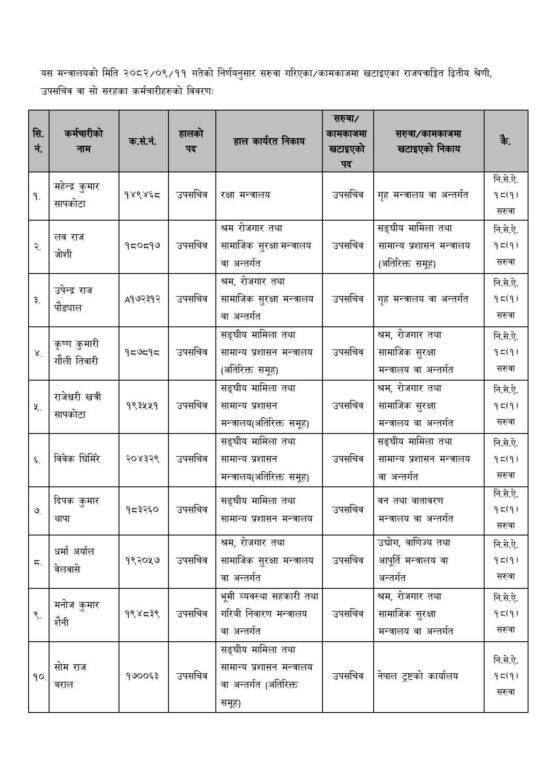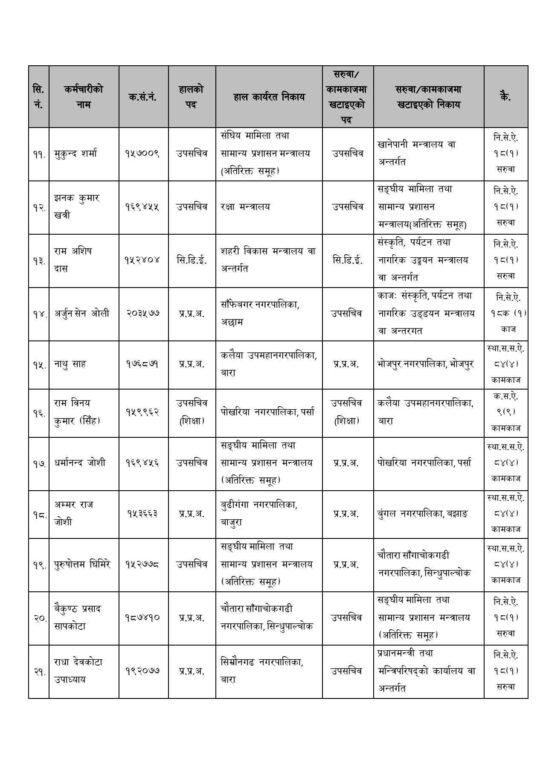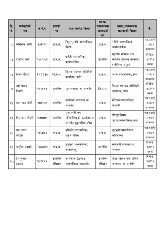 ३० उपसचिवको अन्तरमन्त्रालय सरुवा