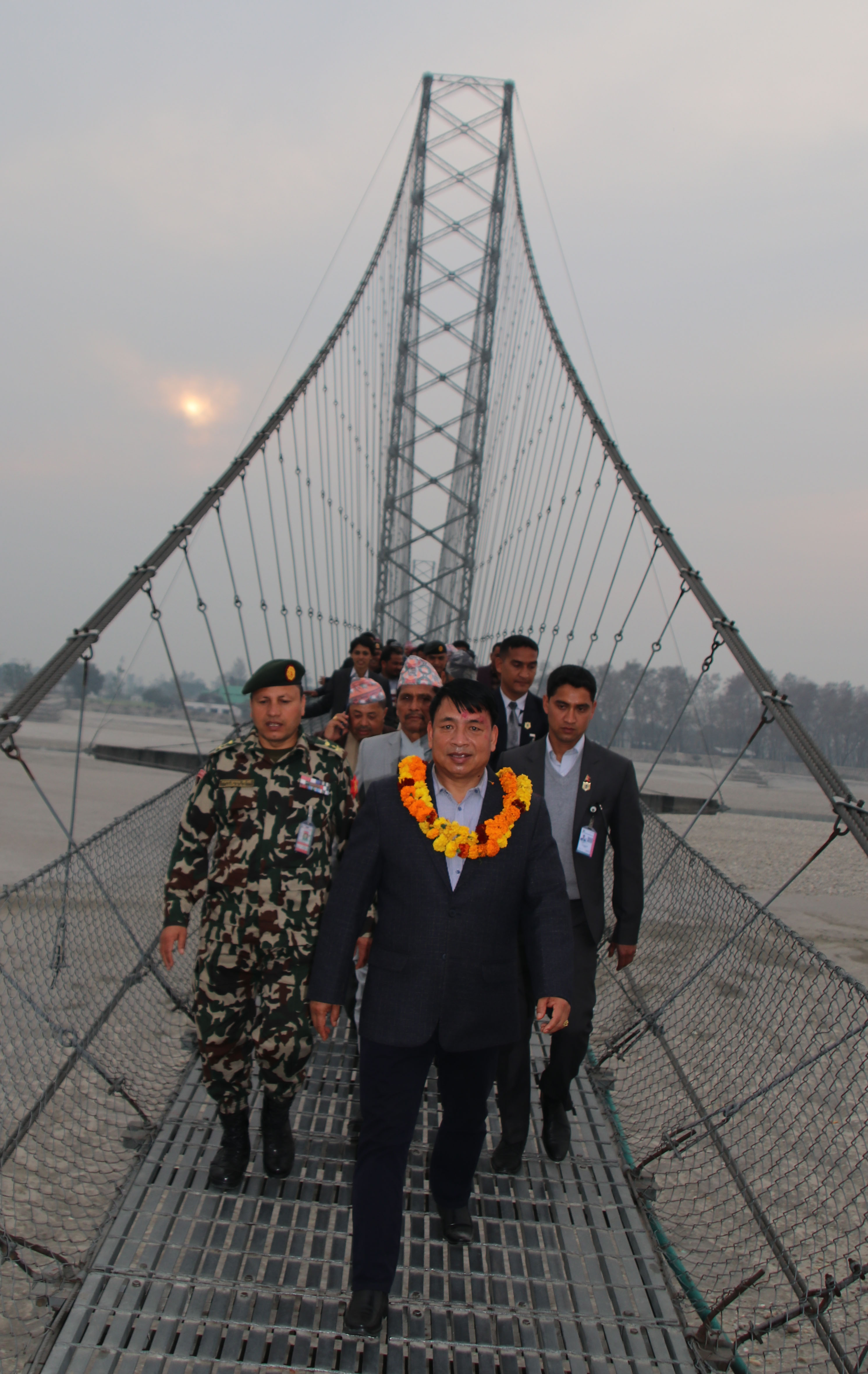 सुदूरपश्चिमकै पर्यटनको केन्द्र बनिरहेको झोलुङ्गे पुल भ्रमणको क्रममा उपराष्ट्रपतिलाई भीमदत्त नगरपालिकाले अभिनन्दन गरेको छ । उपराष्ट्रपति पुनले झालेङ्गे पुल वारपार गर्नुभएको थियो । झोलुङ्गे पुलले भीमदत्त र महाकाली नगरपालिकालाई जोड्ने गर्दछ । झोलुङ्गे पुलको अवलोकनपछि आयोजित अभिनन्दन कार्यक्रमलाई सम्बोधन गर्दै उपराष्ट्रपति पुनले सुदूरपश्चिमको भ्रमण गर्न पाउँदा गौरव लागेको बताए ।