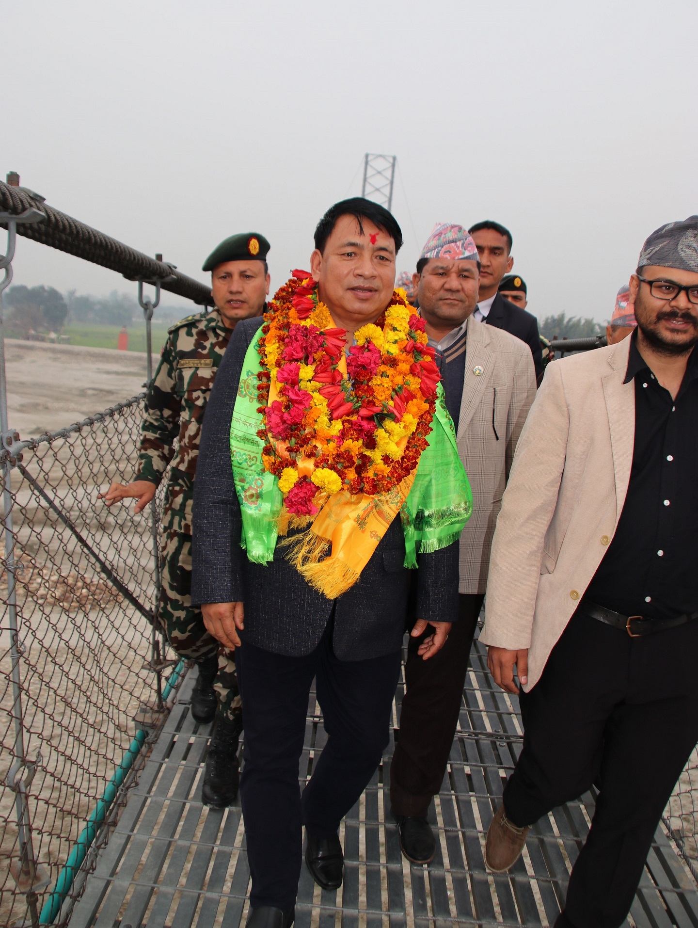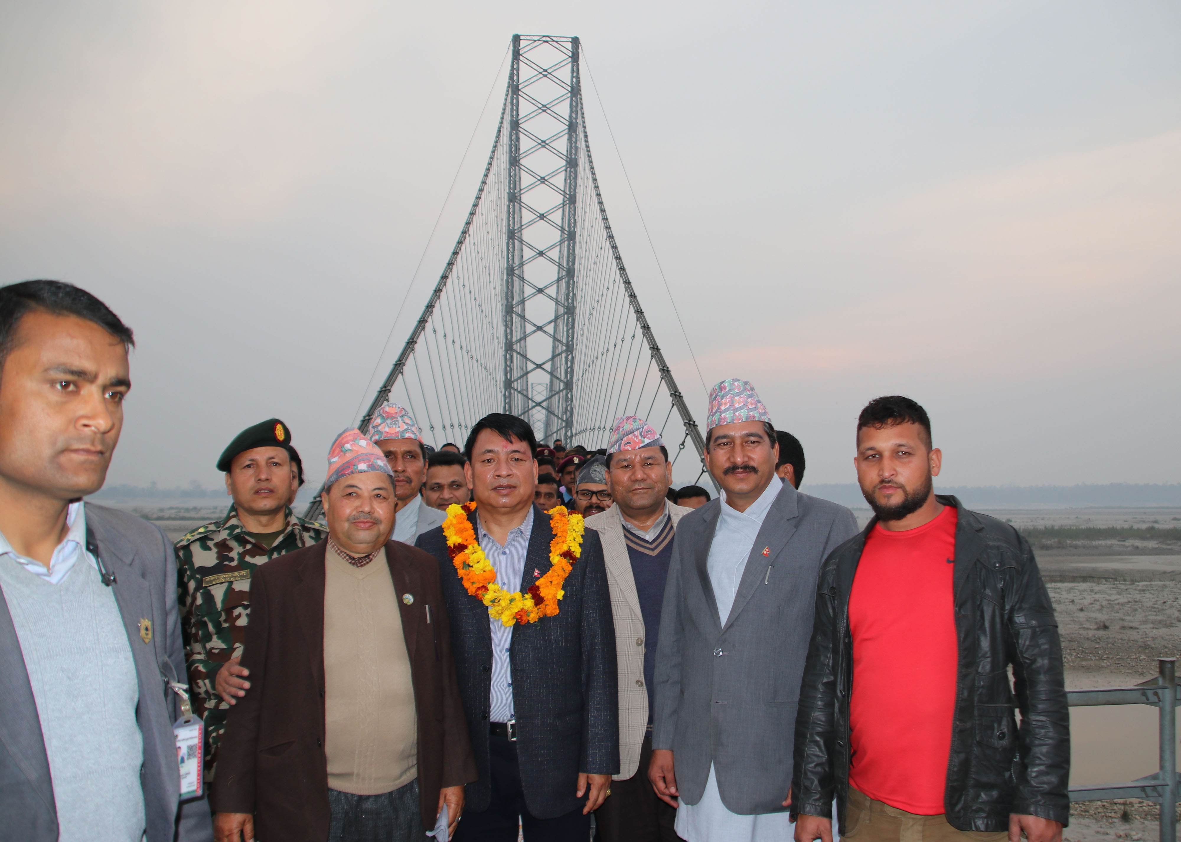 सुदूरपश्चिमकै पर्यटनको केन्द्र बनिरहेको झोलुङ्गे पुल भ्रमणको क्रममा उपराष्ट्रपतिलाई भीमदत्त नगरपालिकाले अभिनन्दन गरेको छ । उपराष्ट्रपति पुनले झालेङ्गे पुल वारपार गर्नुभएको थियो । झोलुङ्गे पुलले भीमदत्त र महाकाली नगरपालिकालाई जोड्ने गर्दछ । झोलुङ्गे पुलको अवलोकनपछि आयोजित अभिनन्दन कार्यक्रमलाई सम्बोधन गर्दै उपराष्ट्रपति पुनले सुदूरपश्चिमको भ्रमण गर्न पाउँदा गौरव लागेको बताए ।