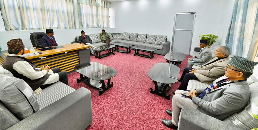 काठमाण्डु- सत्ता गठबन्धनको बैठक सुरु भएको छ । संघीय संसद भवन नयाँ बानेश्वरमा सुरु भएको बैठकमा गठबन्धन दलका शीर्ष नेताहरू सहभागी छन् । प्रधानमन्त्रीमा प्रचण्ड नियुक्त भएपछि पहिलो पटक बसेकाे बैठकमा ‘पावर सेयरिङ’ लगायतका विषयमा छलफल हुने बताइएको छ ।