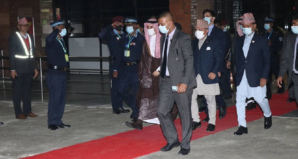 काठमाण्डु – साउदी अरब अधिराज्यका विदेशमन्त्री राजकुमार फैसल बिन फहरान अल साउद २३ सदस्यीय प्रतिनिधिमण्डलको नेतृत्व गर्दै नेपालको दुईदिने औपचारिक भ्रमणमा आज साँझ काठमाडौँ आइपुगेका छन् ।
