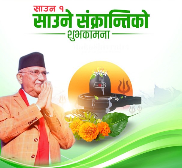‘साउने धरतीझैँ सबैका मनमा हरियाली छाओस्, मनमा मेघजस्तो शीतलता भरियोस्। साउने सङ्क्रान्तिको शुभकामना,’ प्रधानमन्त्री ओलीले सामाजिक सञ्जाल फेसबूकमा लेखेका छन्।