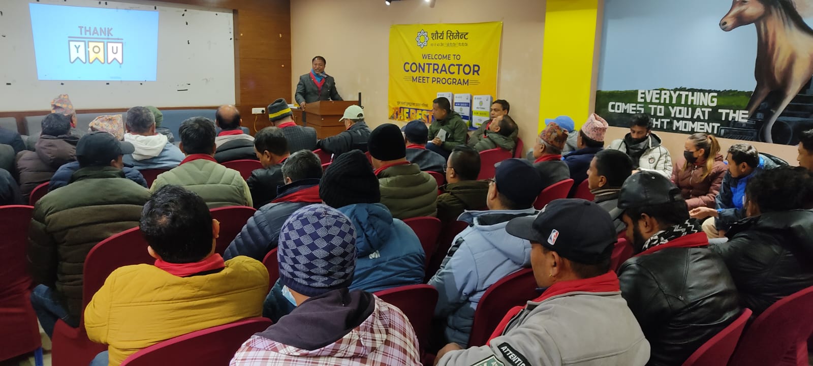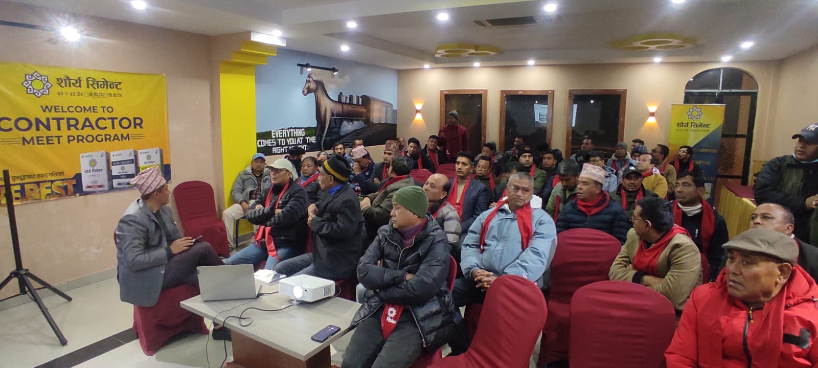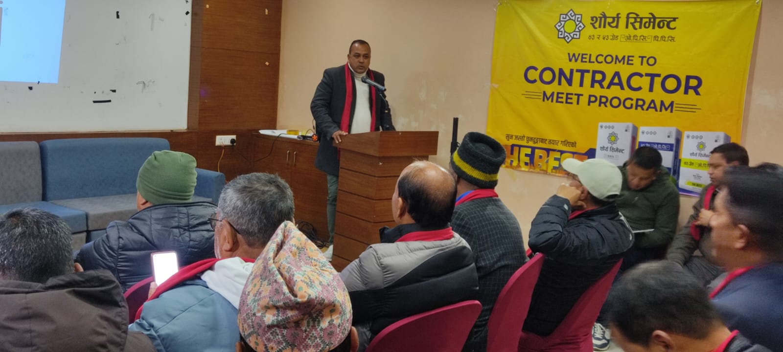 काठमाण्डु – शौर्य सिमेन्ट ई. लिमिटेड एवं स्काई होल्डिङ बिजनेस ग्रूप पब्लिक लिमिटेडको संयुक्त आयोजनामा कन्ट्रयाक्टर मिट कार्यक्रम भएको छ ।